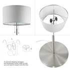 Features: 1. White linen fabric shade adds a touch of elegance and fashion to fit your room. The lampshade opens at the top and the bottom which diffuses sufficient lighting with a calm, ambient, cozy, comfortable, relax glow, for a living room, bedroom, office, dinning room, kitchen, nursery room, den, library and study room 2. With pull chain switches allow for easy access, you don’t have to reach as far to turn on/off 3. Contains 2 E26 bulb sockets, you can turn one bulb on, both on, one off, both off by the pull chains 4. Its simple yet classic design makes it easy to place in room including industrial, mid century, modern, art deco, urban, retro, elegant and stylish, minimalistic, traditional, or even upscale rustic and contemporary décor 6. Easy to Assemble The shade comes rolled up and you just need to snap it onto the shade rims, and screw the pole pieces into the sturdy base and bulbs socket. Then plug in the electric cord, pull the chain switches, it will light up your room Specification: Material: White Linen Fabric Shade, Brushed Nickel Body Drum Shade Size: 16*16*9’’ Cord Lengtht: 73.6’’ Total Height: 60.5’’ Metal Base Size:10*10*1’’ LED Floor Lamp contains 2 E26 bulb sockets, you can install maximum 60W x 2 or 100W x 1 bulbs (bulb not include). They are independently controlled by two pull chain switches, so you can install different watts or different color bulbs for the floor light. Turn on both of them when you need bright light for reading, working and crafting, or turn on one when you just need ambient light for relaxing Both LED and incandescent bulbs can be used on this standing lamp as long as they meets the maximum watts requirement. You can even install a warm white bulb with a daylight one. We recommend to use 9 – 15 watts LED bulbs on this standing pole light, they provide more lumens and save more energy Key Product Features Minimalist yet contemporary designed metal floor lamp: the whole body includes stem, base and pull chain are metal made and brushed nickel finished. The drum Lampshade of the modern floor lamp is made of durable fabric. The weighted metal base ensures it's safe even in kids rooms or with pets around The whole floor standing lamp is 60.5 inches tall and weigh 10 pounds. The cylinder lampshade measures 16 inches in diameter and 9 inches in height and the base measures 10 inches in diameter and 1.5 inches in thickness. The power cord is 6.5 ft long It is a functional and room décor stand up lamp to place next to bedside tables, bed, desk, couch, chair, suit for your living room, office, bedroom, study room. A good warranty is provided and if for any reason you are not satisfied with our products, please contact us to solve within 24 hours.