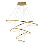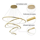 Modern 5-Rings LED Chandelier Lighting Pendant Living Room Ceiling Lamp Fixture Description Our 5-ring golden chandelier not only provides essential lighting but also adds a beautiful visual effect to your room. It adopts an LED light source with step-less dimming between white, warm, and natural light, bringing a wonderful lighting effect and different atmospheres. You can also adjust its height and shape through the wire slings to adapt to different ceiling heights while showing your taste. Key Features Build to Last: High-quality stainless steel, silicone, and steel wire materials and mirror and titanium-electroplating techniques make this chandelier bright, firm, rust-proof, corrosion-resistant, and not easy to fade&deform. Free DIY: You can adjust the height of the wire slings through buttons on the chassis within 1.6-9.8ft and change the shape of the chandelier to adapt to different heights and personality styles. Excellent Lighting Effect: The silicone lampshades have stronger transparency, together with the step-less dimming with 3-light colors at 3000-6500K, making a beautiful lighting effect to light up your world and allowing you to experience the charm of lighting. Double Control Methods: You can turn on/off this chandelier through the wall switch or adjust it with the remote control at a distance within 49.2ft, bringing more convenience to your operation. Humanized Design: It adopts a 95-260V wide voltage and LED drivers, which can adapt to different power supplies, avoid lamp damage and personal safety issues caused by voltage mismatch, help maintain stable lighting effects, and effectively reduce the power loss of lighting fixtures to achieve energy conservation. Beautiful Design: Featuring a five-ring gold shade from large to small, the gold minimalist line design brings a stunning visual effect to your room. It combines sophistication and modernity with clarity and sparkle, creating a romantic ambiance. It is an art piece even when off. Easy to Clean: The smooth surface with mirror and electroplating treatment makes it easy to clean. You only need to use a towel to wipe off the dust and dirt. Ideal Gift: Its beautiful appearance and excellent lighting effect make it an ideal gift for family members, or friends who have a housewarming Premium Service: If you have any questions about the product, please contact us immediately. Our support team will be available within 24 hours. Details Sturdy Base: The round gold chassis of 11.8" in diameter increases stress area, ensures stable support for the light body, and presents classic beauty. The heat-sink holes on the chassis allow for good heat dissipation, extending the lifespan of the chandelier and improving user safety. LED Light Source: The LED light source has high luminous efficiency, low calorific value, and long service life, making it energy-saving and safe to use. And the light source is included, you don't need to install the bulbs. Clear Power Cords: The clear power cords ensure stable power supplies for each lamp ring while not affecting the beauty of the chandelier. Application It is very suitable for 322.9-538.2ft² high-ceiling space within 9.8-23ft and is ideal for living rooms, restaurants, entrances, attics, villas, wedding halls, foyers, banquet corridors, stairs, kitchens, restaurants, hotel lobbies, and will become the focal point of your home. Specification Color: Gold Shape: Circular Style: Contemporary Assembly Required: Yes Material: Stainless Steel, Silicone, Steel Wire Finish Type: Titanium Electroplating, Mirror Process Efficiency: E Color Temperature: 3000-6500K Applicable Area: 30-50㎡/322.9-538.2ft² Applicable Height: 3-7m/9.8-23ft Adjustable Height:0.5-3m/1.6-9.8ft Light Fixture Form: Chandelier Mount Type: Ceiling Mount Light Direction: Downlight Specific Uses For Product: Indoor Use Only Power Source: Corded Electric Control Method: Remote Light Source Type: LED(Included) Power: 113W Voltage: AC 95-260V Lighting Method: Adjustable Light Color: White, Warm White, Natural Light Number of Rings: 5 Remote Control Range: 15m/49.2ft Base Size(D*H): 30*4cm/11.8*1.57in Total Height: 3m/9.8ft Ring Diameter: 100/39.3inch, 80cm/31.5inch, 60cm/23.6inch, 40cm/15.7inch, 25cm/9.84inch Package Included 1* 5-Ring Ceiling Chandelier 1* Remote Control All Accessories for Assembly Notes Please do not place the chandelier directly next to the air conditioning or heating system to avoid rusting caused by the vapor, which can also shorten the service life of the lamp. Please cut off the electric power before installing or cleaning the chandelier. And we recommend that the chandelier be installed by a professional. Please check the product size before ordering to make sure it fits your room. This chandelier may not apply to arched or sloping ceilings. It is not compatible with dimmable switches. Please avoid scratching the surface of the lamp board and wires during installation, and wear insulated gloves(not included) during installation. Please allow the slight color difference caused by the shooting light and 1-3cm error due to manual measurement, and make sure you do not mind before ordering. Payment Delivery details Terms of sales About us Contact us Payment We accept ebay payment 。 Fees such as import duties, taxes are not included in the item price or shipping costs. These charges are the buyer's responsibility. Delivery details Shipping: 2-9 working days to: USA Terms of sales We maintain high standards of excellence and strive for hundred percent customer satisfaction. Feedback is very important to us. We hope that you contact us immediately before you give neutral or negative feedback, so that we can address your concerns. It is impossible to address issues if we do not know about them! About us Your satis faction is our ultimate goal. We work hard to earn your trust and future business. Our certified technicians have tested each item before shipping. The unit comes with 1 year limited warranty on all ma