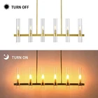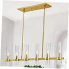Return Policy Fast Delivery Trusted seller Modern 6-Light Linear Chandelier, 36" Gold Kitchen Island Pendant Lighting with Clear Glass Shade Farmhouse Rectangle Dining Room Lighting Adjustable Height Linear Island Pendant Light Product Description Modern & Farmhouse Design: The streamlined rectangular design of this gold linear kitchen island lighting makes the whole look simple and versatile. Our candle style kitchen island lighting with gold finish are commonly used as general lighting in kitchen island, dining room, foyer. This linear chandelier is bright enough to illuminate the whole space well Fully Dimmable & Bulbs Requirment: Each gold ceiling hanging pendant lighting needed six E12 bulbs(bulbs NOT included). Max 60W for each bulb, emits warm light to create a romantic and warm atmosp for the scene.This gold chandelier is fully dimmable when used with a dimmer bulb and compatible dimmer switch Height Adjustable: The 6-light industrial modern ceiling light includes three 12”, one 6” and one 3” stems for an adjustable hanging height. Maximum height can be adjusted to 51" and minimum to 18". You can adjust the length according to your preference Easy to Install: Our gold glass chandelier have full details instructions sheets, use simple KD(knocked down) packing. You will easily install this dining room light fixture, just need to connect the metal rods and install the glass tube on the light body, it only takes a few minutes to get a complete light. Save your time and be happy to enjoy your new decoration Customer Service: Comes with detailed instructions and hardware accessories for quick and easy installation. proudly 100% stand behind all of our product and professional after-sales support. If you have any questions, please contact us, we will give you a satisfactory solution Shipping Returns Payment Shipping Shipping is FREE to all addresses other than APO/PO boxes in the lower 48 states. All our stock ships from US-based warehouses. Shipped via USPS or UPS (depending on location and package weight) Unless stated otherwise, all orders will ship within 24-72 hours of your payment being processed. Check our feedback to see the great reviews of FAST shipping we offer. Returns Seller does not accept returns Payment We currently accept payment via eBay managed payments only. Once payment is cleared, we will dispatch your shipment within 1-3 business days. Please refer to the "Shipping" tab for more information regarding shipping speed to your destination.