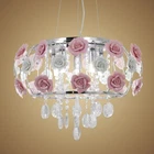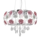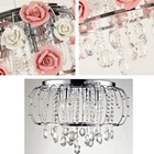Type:Flush Mount Style:Country Finish:Electroplated Suggested Room Fit:Dining Room, Bedroom, Living Room Suggested Room Size:10-15㎡ Dimensions: Fixture Height: 40 cm Fixture Width: 50cm Fixture Length: 50 cm Number of Bulbs :5(Not Included) Bulb Base:E12 Wattage per Bulb:Max 40W Fixture Material:Metal Decoration Material:Crystal Fixture Color:Silver Shade Color:Pink Decoration Color:Transparent