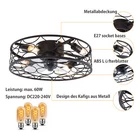 ✦ Dimensions Mounting height: 7,87" (20 cm) Mounting width: 18,5" (48cm) ✦ Information about the light bulb Bulb requirements: Use (4) E27Bulbs, maximum 60watt, options include incandescent lamps, fluorescent lamps, LED, halogen, etc. (Bulbs are not included) Power: max. 60W Voltage: DC110-220V Remote control: yes ✦ Material and color Material: coated black metal, Ceiling Fan Chandelier Ceiling Lighting Fixtures 6 Wind Speeds w/Remote control 【 Unique and safe new design 】 6-stage adjustable fan ceiling light: The fan lamp has six wind speeds to choose from, which you can adjust to your needs. Circulates the air and keeps you cool on hot summer days for a pleasant living and sleeping climate. Timing function and forward and reverse rotation function: The industrial fan light can be timed by remote control, timing 1/2/4 hours, you can customize it according to your needs. The fan light also has the function of forward and reverse rotation. In summer, the ceiling fans run in the positive direction to move the air. In winter, the ceiling fan can turn in the opposite direction. Available all year round. Quiet running industrial ceiling fan with light: use full copper motor, more stable operation, low noise, long service life, smoother and more comfortable wind, and create a pleasant environment during use. Retro ceiling fan with lights: The outside is designed with a metal mesh cage, the fan blades are perfectly hidden in the lampshade, so you are safer during use. The easy-to-install fan ceiling light is perfect for use in bedrooms, living rooms, dining rooms, kitchens and more. This ceiling fan with is designed for all who need a wonderful update for your home. Suit for ceiling of 7.5-11.5 feet, and room of room size 86ft*162ft children's room, bedroom, kitchen island or dining room. Easy to install: hard wire. Perfect design to illuminate your space, whether it is a kitchen island, dining room, bedroom, foyer or any other place. Fans and lights can be controlled separately, which can control your ceiling fan quickly and easily! (max. distance of 20 meters). The closed ceiling fan speed varies from soft to cool, adapts to daily needs; ABS fan blades, durable, light and easy to clean. Timing function – Smart timing set to automatically turn off light and fan after falling asleep. Silent motor ceiling fan for indoor and outdoor use is equipped with whisper wind motor that makes no noise while providing a quiet and comfortable environment ✦ Dimensions Mounting height: 7,87" (20 cm) Mounting width: 18,5" (48cm) ✦ Information about the light bulb Bulb requirements: Use (4) E27Bulbs, maximum 60watt, options include incandescent lamps, fluorescent lamps, LED, halogen, etc. (Bulbs are not included) Power: max. 60W Voltage: DC110-220V Remote control: yes ✦ Material and color Material: coated black metal, Easy installation: surface mounting. Products include English manuals, remote control and installation instructions with the included bracket, which provides easier installation and detailed installation instructions. Applicable Scenarios: The chandelier is suitable for home and business premises, such as living room, dining room, kitchen island, bedroom, foyer, farmhouse bar, restaurant, gallery, showroom, hotel, cafe, office. Package included 1 *Fan light (bulbs not included) 1.Accessory package 1.User manual ✦ Proposal: 1.For safe installation, please ensure that the electrical box to which this device is mounted is properly attached to a structural element of the building. 2. All wires are connected. When unpacking, be careful not to pull with cables, as a bad connection may occur. 3.Do not connect power until your device is fully assembled. Payment Delivery details Terms of sales About us Contact us Payment We accept ebay payment 。 Fees such as import duties, taxes are not included in the item price or shipping costs. These charges are the buyer's responsibility. Delivery details Shipping: 2-9 working days to: USA Terms of sales We maintain high standards of excellence and strive for hundred percent customer satisfaction. Feedback is very important to us. We hope that you contact us immediately before you give neutral or negative feedback, so that we can address your concerns. It is impossible to address issues if we do not know about them! About us Your satis faction is our ultimate goal. We work hard to earn your trust and future business. Our certified technicians have tested each item before shipping. The unit comes with 1 year limited warranty on all manufacturing defects. a) If you receive a defective item, you may return it or ask for a discount. Please contact us within 14 days after you receive the package. b) What you returned must be intact and in its original packaging as re? u. Customer is responsible for shipping costs of the returned item. c) We will cover the cost of shipping back t with the shipping rate indicated in the registration page. We will send you a new unit or refund the full payment you paid. Thank you. Contact us Business Hour Business Hour: Monday To Friday: 8:30 AM to 5:00 PM (Beijing China time) Due to time zones, our reply to your questions may not be immediately. But within above working time, we will reply your email within 24 hours. If it's non-workdays, please kindly be patient and wait till Monday. Please contact us with ebay message. Please feel free to contact us if you have any questions. Monday To Friday: 8:30 AM to 5:00 PM (Beijing China time) Due to time zones, our reply to your questions may not be immediately. But within above working time, we will reply your email within 24 hours. If it's non-workdays, please kindly be patient and wait till Monday. Please contact us with ebay message. Please feel free to contact us if you have any questions.