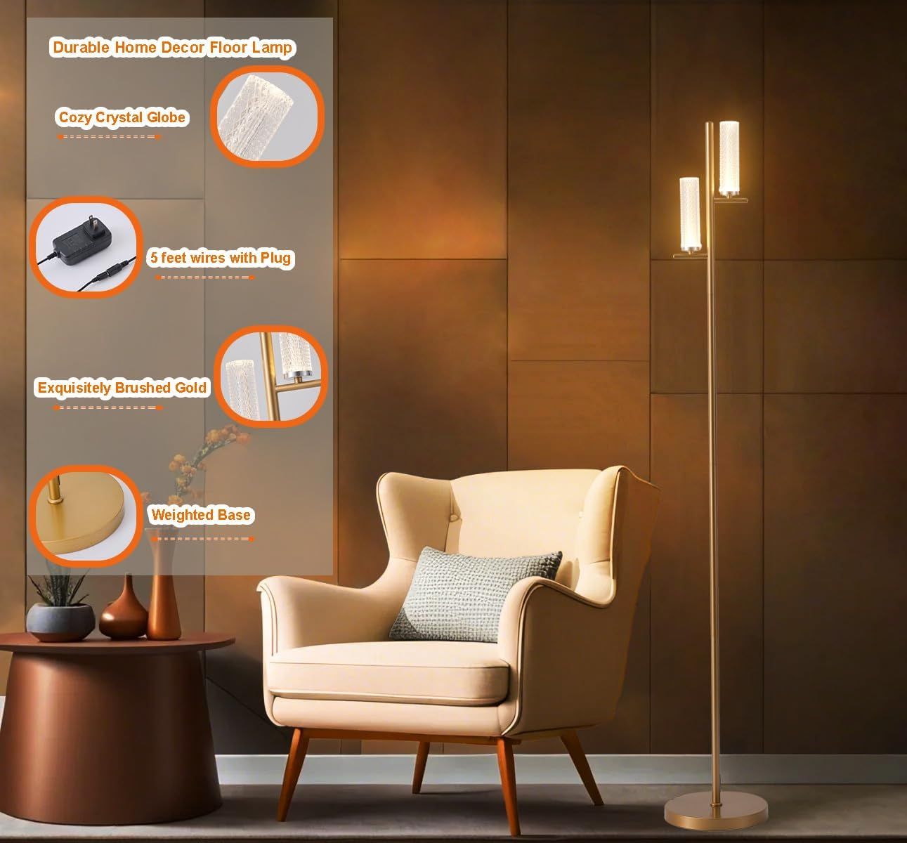 Store New Arrivals Add to Favorite View Feedback Contact Crystal Floor Lamp for Living Room, Modern Cylinder Standing Lamp with Two Crystal Lampshade and 3000K LED Lights, Cute Gold Corner Tall Lamps for Bedroom, Office - Antique Brass Description Item model number FC-FLYZ-2LCY Light Source Type LED Style Modern Number of Items 1 Power Source Corded Electric Number of Light Sources 2 Country of Origin China Batteries Included? No Lighting Method multi directional Lamp Type Floor Lamp Room Type Office, Bedroom, Living Room Product Dimensions 10"D x 10"W x 64"H Material Frosted Glass, Metal Installation Type Freestanding Finish Type Gold Specific Uses For Product Indoor use only Indoor/Outdoor Usage Indoor Brightness 2000 Lumen Batteries Required? No Item Weight 3.7 Pounds Special Features Energy Efficient, 2 lights Cylinder, no flicker or buzz, easy-to-use foot pedal switch, versatile design Special Feature Energy Efficient, 2 lights Cylinder, no flicker or buzz, easy-to-use foot pedal switch, versatile design Part Number FLYZ-2LCY Shade Color Clear Color Temperature 3000 Kelvin Color 2 Cylinder Gold Wattage 18 watts Base Material Iron Bulb Base Flanged Shape Straight Voltage 120 Volts (AC) Shade Material Acrylic Finish types Gold Included Components User Manual, Cylinder Lamp Shades with Built in LED lights, gold metal lamp pole, gold metal lamp base Base Diameter 10 Inches Switch Type Foot Stylish Living Room Décor Elevate your room and office with our cylinder floor lamp, a refined design. It has a modern and sleek gold lamp pole. The charming warm lights bring a cozy atmosphere and the aesthetic design infuse your room or office with an upscale, refined ambiance. Whether your space adheres to the classic mid - century charm, contemporary minimalism, or any other design style, this lamp is can perfect fit in. Ideal for offices, living rooms, or bedrooms, it effortlessly complements your existing decor, making it a must - have if you are seeking a harmonious blend of style and functionality. Tall Lamp and Safe: The modern floor lamp combines a simple elegant look with a sleek design that allows for versatile placement. Whether put in a corner, positioned in a hallway, or placed behind the couch, it adds a touch of charm to any space. Additionl,Its weighted base ensures remarkable stability, making it highly resistant to tipping over. You can have peace of mind when kids or pets play around. You don't have to compromise on style for the sake of safety. Long - Lasting Lamp: A floor lamp that stands the test of time. The Fiqevs floor lamp comes equipped with two built - in LED lights that offer long lifespan. With a daily usage of 3 hours, these LEDs are designed to last for 20 years (or 20,000 hours), providing you with consistent and reliable illumination for years. LED technology is not only long - lasting but also highly energy - efficient. Compared to halogen or incandescent bulbs, LEDs consume less power, making them an eco - friendly choice that helps you save on energy costs. Additionally, the 3000K warm white light emitted by this standing lamp creates a cozy and inviting atmosphere. Hassle - Free Assembly: Assembly is a breeze with this floor lamp. All the necessary components are neatly packaged. You don't need any tools to assemble the floor lamp for bedroom. Simply follow the easy understand installation steps in the manual, and you can have the entire floor lamp assembled in just a few minutes. Long Reliable Warranty: Fiqevs floor lamp 3-Year Warranty! All our products produce strictly following US quality standards. Customer satisfaction always our first priority, we will support you with 24-hours after-sales service, if any issues, we will offer you solution at first time. Product Description Modern and Minimalist Floor Lamp Elegant design that harmonizes with any home interior. The ideal height combines functionality with contemporary aesthetics. Creates a warm atmosphere perfect for reading evenings or social gatherings. Ships with built-in led light included - ready to transform your space immediately upon arrival. The Robust Foundation Floor Lamp Boasts an Exceptionally Weighty Base Crafted for superior stability. This thoughtfully engineered weighted base standing lamp eliminates wobbling entirely, providing steadfast illumination even in high-traffic areas. Its solid construction ensures dependable performance while adding a touch of sophisticated durability to your living space. Great Floor Lamp for Office Cozy Light and Stability Marble Basse Elegantly Withstanding Daily Household Activity The Fiqevs White Modern Floor Lamp brings practical illumination to any living space. The 2700K warm white light paired with a CRYSTAL opal shade creates gentle, consistent illumination without flickering or overheating. Perfect for living rooms, study areas, sofa corners, or kitchens. ABOUT US We offer the best prices around on high quality products. Our E-store includes media such as books, movies, music and games while offering electronics, toys, sporting apparel, clothing, tools, general home, garden items and more. SHIPPING We are always working hard to ensure your package arrives as soon as possible. Please understand that some factors like weather, high postal traffic, and the performance of shipping companies are outside of our control. We offer free shipping to the lower 48 states and ship within 2 business days of payment, usually sooner. We do not accept P.O. Boxes. Please provide a physical address. For shipping outside of the continental USA, we only use eBay's Global Shipping Program.The item is shipped to KY and then sent to the rest of the world. International customers are responsible for all duties and taxes. Continue to check out in order to calculate costs for shipping the item to your country. Messages regarding eBay's Global Shipping Program MUST be directed at eBay EXCLUSIVELY. RETURNS We offer a 30-Day Return Policy on items which you are not completely sa