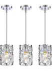 Modern Crystal Pendant Light Fixture 3-Pack Chrome Finish Hanging Lighting...