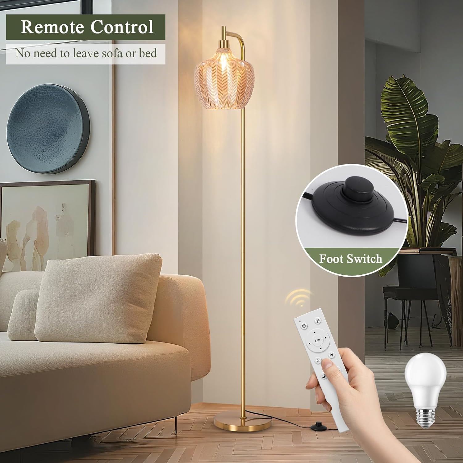 Gold Floor Lamp for Living Room, Modern Glass Standing Lamp with Remote, Dimmable Amber Lampshade Tall Floor Lamps, Mid Century Vintage Floor Light for Bedroom Study Room Office (Amber) Ships from USA | 30-Day Free Returns Product Details: Item model number FL-1157 Style Mid Century Modern Number of Items 1 Power Source Battery Powered Country of Origin China Batteries Included? Yes Lamp Type Floor Lamp Room Type Office, Bedroom, Living Room Product Dimensions 9"D x 60"W x 9"H Material Metal Finish Type Polished Specific Uses For Product Home Included Components User Manual Indoor/Outdoor Usage Indoor Bulb Base E26 Batteries Required? Yes Item Weight 6 Pounds Special Features Color Changing Special Feature Color Changing Part Number FL-1157 Shade Color Amber Color Amber Wattage 40 watts Batteries 1 12V batteries required. (included) Shade Material Metal Finish types Polished Switch Type Remote Why Buy From Us: Fast & FREE Shipping on all orders All items ship directly from USA warehouses Easy returns – your satisfaction is our priority 24/7 customer support – we’re here to help Shipping & Handling: Most orders are processed within 1 business day . Tracking will be uploaded as soon as your order ships. Estimated delivery time: 2-5 business days . Returns: If you’re not fully satisfied, return the item within 30 days for a full refund or exchange. Buyer pays return shipping unless the item arrives damaged or defective. Shop with confidence – Thousands of happy customers trust us for quality products and fast service!