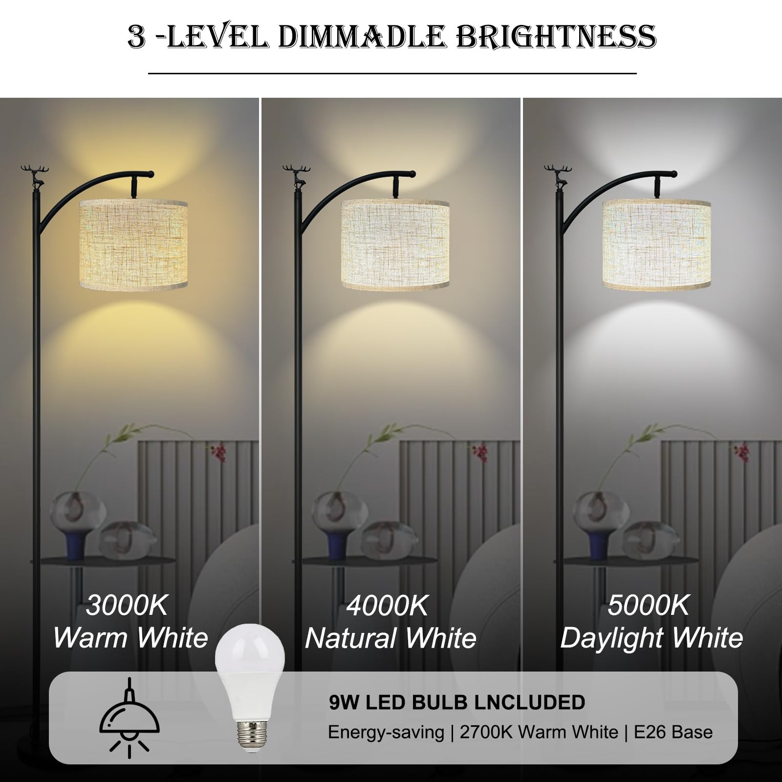 Floor Lamp, Floor Lamp for Living Room with 3 Color Temperatures LED Bulb, Standing Lamp, High Linen Lampshade Modern Floor Lamp, Living Room Bedroom Office Dining Room Foot Switch Modern 3-Ways dimmable floor lamp Adjustable rotating lamp holder Upgrade the foot switch bedroom floor lamp Eye protection and energy saving lighting 【Satisfaction Guarantee】All products in the store are provided with a complete one-year warranty.Pehtini is a brand dedicated to designing creative,personalized and elegant lighting.We constantly improve the quality of our products.If for any reason you are not satisfied with your purchase,please contact us,and we will find ways to solve your problem for you.We promise 100% friendly customer service,because our primary goal is to make customers satisfied.