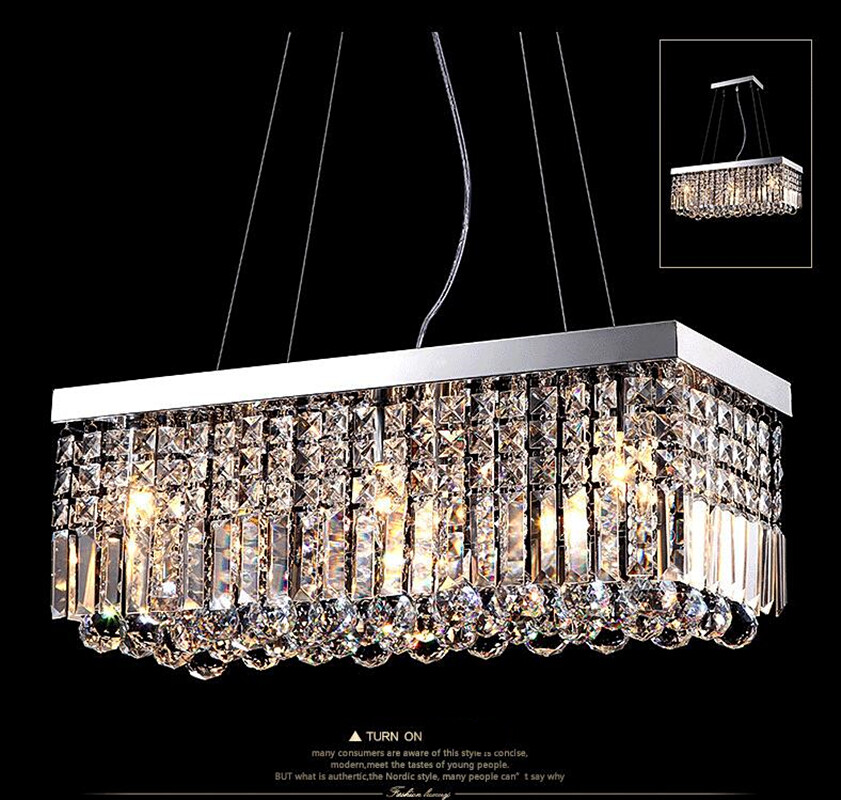 Modern Luxury K9 Crystal Rectangle Pendant Lamp Dining Chandelier Lighting 60CM Size: Length: 60cm (23.6") Cable length: 39.4" / 100cm (cable length is adjustable.) Material: K9 Crystal , Stainless Steel Color: Clear crystal & Polished chrome finish and base. Light Source: Max. 40W E12 bulbs (Not Included). Voltage: 110V - 120V Payment Delivery details Terms of sales About us Contact us Payment You could make payment via: Delivery details Packages will ship via by UPS or USPS within our handling time,once the package is shipped out ,normally shipping takes about 3-10 working days,but due to different cities and states,shipping time will be different. Terms of sales If you any problem about shipping information, or the item you got : Arrived damaged; Wrong item sent; Missing parts or pieces; Doesn't work or defective; Doesn't match description or photos. Pls click "Contact Seller" and send us message firstly. Then we could have a check and will take responsibility to resolve the problem with you in good communication. About us Our company specializing in selling all kinds of light fixtures,such as ceiling fans,chandeliers,crystal lights,retro lamps,pendant light,etc. If there's any light fixture you are interested,pls feel free to contact us for more details. Contact us Normally your message will be replied in 1 business day,If after 24 hours you do not receive our reply,please kindly re-send us the message,because sometimes ebay message system will have technical problem,so your message can't send to us successfully.