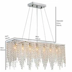 Description: Rain drop collection, sparkles from every angle. Full Assembly Required with time and effort. Feature: Material: Polished chrome stainless steel canopy and frame, top K9 clear crystal Dimension: Length 32" (80cm), Width 8" (20cm), Height 16" (40cm). Pendant wire: adjustable 59"(150cm) Light Source:E12 x 7 Bulbs Required (Max 40W each, NOT included). Works with incandescent, LED, CFL, halogen or color changing bulbs up to 40W. Fully dimmable when used with dimmable bulbs and a compatible dimmer switch (not included). Application: Ideal for living room, dining room, kitchen island, bedroom, foyer, indoor, farmhouse, sloped ceiling, bar, restaurants, galleries, exhibition room, hotel, coffee shop, office. Modern Rectangular Raindrop Crystal Chandelier Light Ceiling Light Pendant Lamp Description: Rain drop collection, sparkles from every angle. Full Assembly Required with time and effort. Feature: Material : Polished chrome stainless steel canopy and frame, top K9 clear crystal Dimension : Length 32" (80cm), Width 8" (20cm), Height 16" (40cm). Pendant wire: adjustable 59"(150cm) Light Source : E12 x 7 Bulbs Required (Max 40W each, NOT included) . Works with incandescent, LED, CFL, halogen or color changing bulbs up to 40W. Fully dimmable when used with dimmable bulbs and a compatible dimmer switch ( not included) . Application: Ideal for living room, dining room, kitchen island, bedroom, foyer, indoor, farmhouse, sloped ceiling, bar, restaurants, galleries, exhibition room, hotel, coffee shop, office. Payment Delivery details Terms of sales About us Contact us Payment We accept ebay payment 。 Fees such as import duties, taxes are not included in the item price or shipping costs. These charges are the buyer's responsibility. Delivery details Shipping: 2-9 working days to: USA Terms of sales We maintain high standards of excellence and strive for hundred percent customer satisfaction. Feedback is very important to us. We hope that you contact us immediately before you give neutral or negative feedback, so that we can address your concerns. It is impossible to address issues if we do not know about them! About us Your satis faction is our ultimate goal. We work hard to earn your trust and future business. Our certified technicians have tested each item before shipping. The unit comes with 1 year limited warranty on all manufacturing defects. a) If you receive a defective item, you may return it or ask for a discount. Please contact us within 14 days after you receive the package. b) What you returned must be intact and in its original packaging as re? u. Customer is responsible for shipping costs of the returned item. c) We will cover the cost of shipping back t with the shipping rate indicated in the registration page. We will send you a new unit or refund the full payment you paid. Thank you. Contact us Business Hour Business Hour: Monday To Friday: 8:30 AM to 5:00 PM (Beijing China time) Due to time zones, our reply to your questions may not be immediately. But within above working time, we will reply your email within 24 hours. If it's non-workdays, please kindly be patient and wait till Monday. Please contact us with ebay message. Please feel free to contact us if you have any questions. Monday To Friday: 8:30 AM to 5:00 PM (Beijing China time) Due to time zones, our reply to your questions may not be immediately. But within above working time, we will reply your email within 24 hours. If it's non-workdays, please kindly be patient and wait till Monday. Please contact us with ebay message. Please feel free to contact us if you have any questions. Features Durable Category Lighting Number of Bulbs 7 E12 Bulbs ( Not Included) Material Aluminum, K9 Crystal Item Length 80cm/31.5inch Pendant Wire Adjustable 150cm/59inch Voltage 110-120V Item Height 35cm/13.77inch Style Crystal, Modern Item Width 20cm/7.87inch Recommended Room Size 15-20㎡/161-215sq. ft Ceiling Chassis Size 17.5*8.89cm/6.89*3.5inch * Feature * Creative Design,Durable Material,Beautiful Appearance Note: Do not send to Brazil Bundle Description: No Feature 1 *Stable characteristic*, *high reliability* shipping notice Can not ship to Puerto Rico,Alaska/Hawaii Item location: CA /NJ /Austell Transportation does not include: canarias Power Source Hardwired MPN Does Not Apply Shade Shape Rain Drop Power Consumption Max 40W each, NOT included Room Bedroom, Dining Room, Home Office/Study, Living Room, Porch Lighting Technology LED Installation Area Indoor Manufacturer Warranty 2 years Department Adults Light Color Warm White Finish Polished Brand Unbranded Color Clear Item Diameter 16 in Type Chandelier