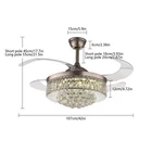 Modern Ceiling Fan with Light Retractable Ceiling Fan Light Ceiling Fan Light US Welcome to our store(´▽`ʃ♡ƪ) Description This ceiling fan light with multi-function will bring bright light, a cool breeze, cozy and luxurious style to your house. It comes with adjustable wind speeds, reverse function, and adjustable light colors for your daily light and cool needs. In addition, the retractable fan blades and crystal pendants make it an exquisite decoration that brings beauty and luxury to your room. Key Features Last for Years: Premium wrought iron, metal, crystal, and ABS materials and an electroplating process make this product resistant to corrosion, rust, abrasion, and deformation, making it retain beauty and functionality for a long period. Great Lighting: The environment-friendly and energy-saving LED light source comes with three different light colors (warm, neutral, and white) with color temperatures of 3000K, 4500K, and 6000K to fully meet your usage needs in different scenarios while avoiding glare and stroboscopic, protecting your eyes, and ensuring excellent lighting effects. Wide Adaptability: A wide voltage range of 110-220V applies to most of the household's electricity needs. Moreover, you can choose a short rod (3.93in) or a long rod (7.87in) for installation according to the room's height and your needs. Thoughtful Design: It has 6 gears of wind speed and you can choose low speed to enjoy the comfortable breeze or high speed to cool down quickly. In addition, the forward and reverse function allows you to experience a cool breeze in the summer and circulate hot air to keep your home warm in the winter. Timing Function: The timer function(1h, 2h, and 4h) allows the product to provide a comfortable and cool breeze even when you are sleeping and allows the product to turn off automatically to avoid excessive power waste. Stylish Appearance: The round shade is wrapped with angular crystal columns on the outside and embellished with crystal balls underneath, making this product a high-profile decorative piece that adds elegance and luxury to your room. Remote Control: You can use the remote control to control the light and fan work more easily in the range of 9.84-16.4ft. Protective Package: To prevent the product from being damaged during transportation, we packed it with foam to protect your products to the maximum extent possible. Buy with Confidence: We stand behind all our guests and look forward to assisting you with your purchase. It is our pleasure to answer your confusion and questions. The end of the story between us is not "we sell and you buy". Details Pure Copper Motor: It features a longer life, high operating efficiency, and low noise, enhancing product performance and offering a better user experience. Sturdy Base: The 5.9*2.36 inches base provides strong and stable support for the light without easily swaying, improving the safety of use. Retractable Fan Blades: They can be retracted when not in use to reduce dust accumulation and will not affect the product's aesthetics. Application It is suitable for rooms with a 161.45-215.28ft² area and 8.69ft height, such as living room, bedroom, basement, restaurant, cafe, reading room, store, hotel, children's room, and nursery. Specifications Color: Silver, Clear Material: Wrought Iron, Metal, Crystal, ABS Process: Electroplated Mount Type: Ceiling Mounted Assembly Required: Yes Motor Type: Pure Copper Brushless Motor Efficiency: E Voltage: 110-220V Light Power: 72W Motor Power: 35W Fan Speed Level: 6 Timing Function: 1h, 2h, 4h Noise: 35dB Light Source: LED Brightness: 2200lm Light Color: Warm, White, Neutral Light Color Temperature: 3000K, 4500K, 6000K Illumination Area: 15-20m²/161.45-215.28ft² Suitable Room Height: 2.65m/8.69ft Remote Control Battery Type: 2*AAA Batteries(Included) Remote Control Distance: 3-5m/9.84-16.4ft Lampshade Height: 11.94cm/4.7in Rod Length: 10cm/3.93in, 20cm/7.87in Base Size(D*H): 14.98*5.99cm/5.9*2.36in Product Overall Length: 107cm/42in Packaging Size: 55*55*39cm/21.65*21.65*15.35in Gross Weight: 12.3kg/27.12lbs Net Weight: 11.44kg/25.22lbs Package Included 1* Ceiling Fan Light 1* Remote Control 1* English Manual Other Needed Accessories Notes 1.Please check the dimensions of the product before ordering to ensure it fits your home. 2.Normally, the expansion screw will blow up after the force is applied. 3.Please read the manual carefully before installation and use and pay attention to the safety matters therein. 4.Please make sure the power is cut off before installation. Please install it by someone with an electrical license if necessary. Please wear electric insulation gloves (not included) and avoid scratching the surface of the item and the electric wire when installing. Please do not install it next to the air conditioner or heater, which will affect the service life of the product. 5.Please use this item within the applicable voltage range and clean it regularly. Please wipe with a soft cloth, it is not suitable to clean with cleaning agents. 6.Please allow the slight color difference caused by the shooting light and 1-3cm error due to manual measurement, and make sure you do not mind before you order. Payment Delivery details Terms of sales About us Contact us Payment We accept ebay payment 。 Fees such as import duties, taxes are not included in the item price or shipping costs. These charges are the buyer's responsibility. Delivery details Shipping: 2-9 working days to: USA Terms of sales We maintain high standards of excellence and strive for hundred percent customer satisfaction. Feedback is very important to us. We hope that you contact us immediately before you give neutral or negative feedback, so that we can address your concerns. It is impossible to address issues if we do not know about them! About us Your satis faction is our ultimate goal. We work hard to earn your trust and future business. Our certified technicians have tested each item before shipping.