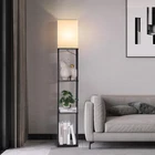 Floor lights with shelving, modern square standing lights with three-color temperature bulbs, corner display bookshelf lights in living rooms, bedrooms and offices 【3 color temperatures】lamp holder built-in 9 watt 3 color temperature energy-saving LED bulb, can emit (3000K warm light, 4500K natural light, 6500K white light), using non-dazzling cloth lamp shade, emitted light will not harm the eyes. And can manually switch the light freely to create a perfect atmosphere for different scenes. So you don't need to buy extra bulbs. 【Quality Lampshade with Soft Light】Equipped with a high quality fabric lampshade, this tall lamp has a elegant look that suits all furnishing style. The lighting through the lampshade becomes soft and gentle, creating a cozy and comfortable atmosphere at night and protecting your eyes from direct light while reading or studying. 【Storage space 】Our floor lamps maximize your storage potential with 3 layers of high density fiberboard, each with a maximum weight of over 50 pounds, providing plenty of space to display your precious photos, books and plants.as well as daily necessities such as mobile phones.This larger storage floor lamp is both practical and decorative for your home and matches perfectly with your furniture. 【multipurpose】Our floor lamps are space-saving designs that can be placed next to your bed or in a corner without taking up too much space.Blend seamlessly into your living room, bedroom or office.It can be used to place objects or for custom lighting. It is very suitable as a gift for Mother's Day, Thanksgiving Day, or Christmas. 【Easy to assemble 】shelf floor lamps have been structurally upgraded to simplify installation steps. In comparison, it will save you 50% of installation time.Save you assembly time, which is what we are after.The package comes with the tools needed for assembly and an instruction manual with text and video installation steps.Tips: Please tighten each lamp post to maintain the stability of the whole lamp.