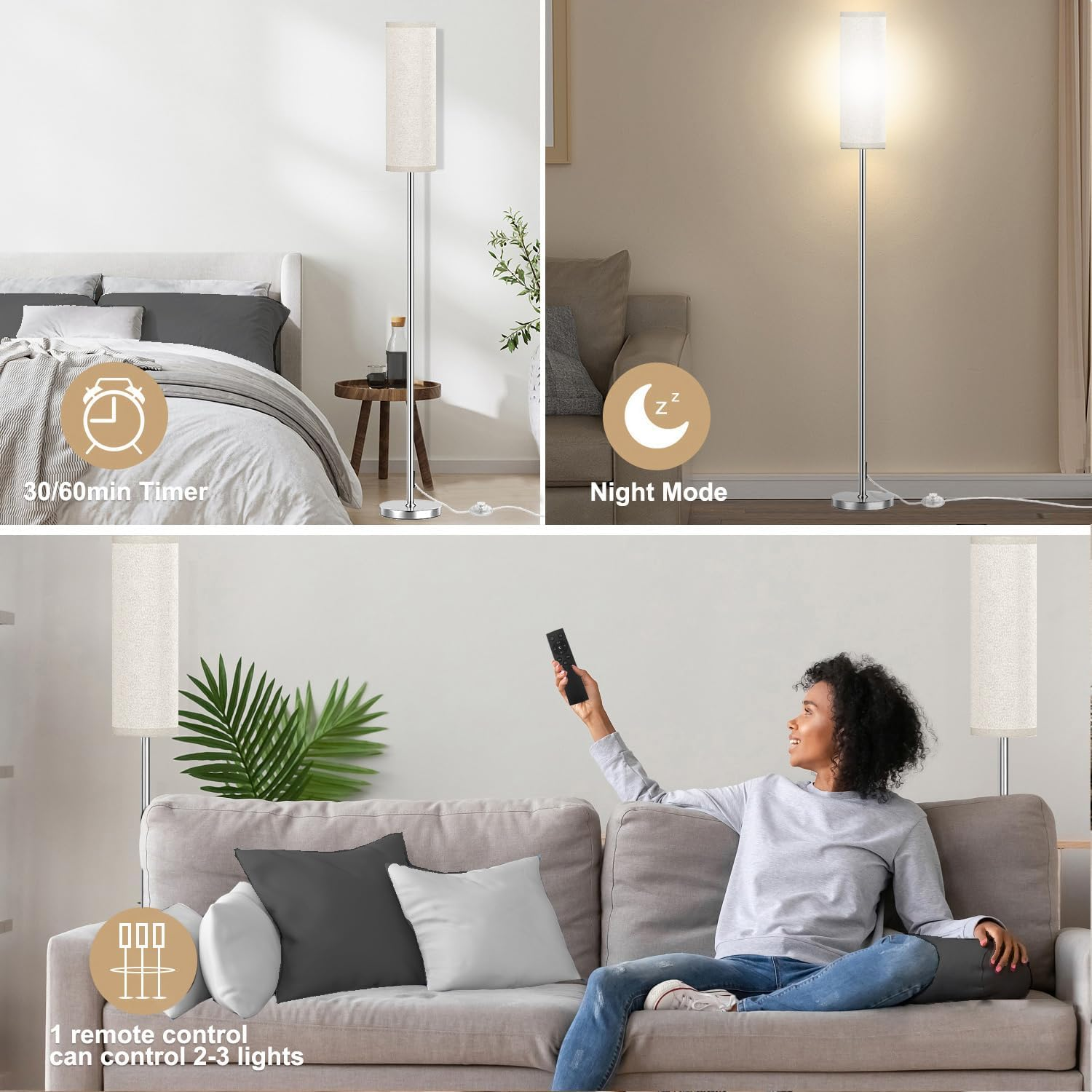 Store New Arrivals Add to Favorite View Feedback Contact Floor Lamp for Living Room Bedroom, Modern Floor Lamp with Remote,Stepless Dimmable 12W Bulb Included,Nickel Pole and Beige Linen Lampshade Description Item model number JP-RGB Light Source Type LED Style Modern Number of Items 1 Power Source Corded Electric Number of Light Sources 1 Control Method Remote Batteries Included? No Lighting Method LED Lamp Type LED Number of Pieces 1 Room Type Living Room,Bedroom,Dining Room,Kitchen,Kids,Nursery,Bathroom,Home Office Product Dimensions 7.1"D x 7.1"W x 67"H Material Linen, Nickel Efficiency Energy-efficient Controller Type Remote Control Finish Type Polished Indoor/Outdoor Usage Indoor Country of Origin China Water Resistance Level Not Water Resistant Batteries Required? No Item Weight 6.5 Pounds Connectivity Technology IR Special Features Corded Special Feature Corded Part Number JP2014 Shade Color Beige Mounting Type Floor Mount Color Brushed Nickel & Beige(12W Bulb) Wattage 12 watts Is Cordless? No Base Material Metal Is Waterproof False Voltage 120 Volts Shade Material Linen Finish types Polished Included Components Remote Control Switch Type Remote [Including a 12W LED remote control bulb] capable of emitting 1000 lumens of light, equivalent to the light effect of a 100W ordinary incandescent lamp. The brightness can be freely adjusted between 3000K and 6500K (cold white, natural white, warm white, warm color), making the eyes feel more comfortable. It is the perfect modern reading light and living room light. [Modern simple floor lamp] Nickel pole and Beige linen lampshade, suitable for placing beside sofa, bed, lounge chair and desk. The heavy and sturdy chassis makes it difficult to shake and overturn. Can be paired with modern, retro, medieval, industrial and other decorative styles. [Timing function] There are 30 minute and 60 minute timer buttons on the remote control, which can help you schedule the light off time in advance and add traditional foot switches. [Floor lamp with remote control] Remember the lighting effect set last time you turn on the light, rather than setting it every time you turn on the light. The Light-on-dark color scheme button is set directly on the remote control. When you need a darker night light effect, you can directly enter with one click. [Combined use] Two lights can be combined together, or three lights can be combined, and only one remote control can be used to control multiple floor lights simultaneously. Solve the problem of not finding the corresponding remote control. Product Description 1 Lamp for living room 2 Lamp for bedroom Qaubauyt Modern Floor Lamp 1: Brushed Nickel metal light pole with Beige linen lampshade,suitable to be placed next to sofa,bed,chaise longue and desk.Heavy and sturdy chassis makes it not easy to shake and tip over.Can be matched with modern, retro,mid-century,industrial and other decorative styles. 2: Two lamps can be combined together,or three lamps can be combined,and only one remote control can be used to control multiple floor lamps at the same time.Solve the trouble that you can't find the corresponding remote control. 3: We have always been guided by the concept of energy saving, and safety, and strive to make every safe and smart floor lamp.At the same time,we also serve customers wholeheartedly as the first goal.When you use our products,we hope to give you a more perfect service. 1 Party 2 Family 3 Reading 4 Holiday Floor lamps for living room tall lamps for living room Including 12W LED remote control bulb,which is equivalent to the light effect of 100W ordinary incandescent lamp,and can freely adjust the brightness (cold white, natural white, warm white, warm color) at 3000K-6500K to make the eyes feel more comfortable,it is a perfect modern reading light and living room lights. floor lamp for bedroom There are 30-minute and 60-minute timer buttons on the remote control to help you arrange the time to turn off the lights in advance, The video showcases the product in use. The video guides you through product setup. The video compares multiple products. The video shows the product being unpacked. Qaubauyt Floor lamps standing lamps for living room Remember the last set light effect every time you turn on the light, instead of setting it every time you turn it on.The night mode button is directly set on the remote control.When you need a darker night light effect,you can directly enter it with one key.and a traditional foot switch is added.Give you a more restful sleep. ABOUT US We offer the best prices around on high quality products. Our E-store includes media such as books, movies, music and games while offering electronics, toys, sporting apparel, clothing, tools, general home, garden items and more. SHIPPING We are always working hard to ensure your package arrives as soon as possible. Please understand that some factors like weather, high postal traffic, and the performance of shipping companies are outside of our control. We offer free shipping to the lower 48 states and ship within 2 business days of payment, usually sooner. We do not accept P.O. Boxes. Please provide a physical address. For shipping outside of the continental USA, we only use eBay's Global Shipping Program.The item is shipped to KY and then sent to the rest of the world. International customers are responsible for all duties and taxes. Continue to check out in order to calculate costs for shipping the item to your country. Messages regarding eBay's Global Shipping Program MUST be directed at eBay EXCLUSIVELY. RETURNS We offer a 30-Day Return Policy on items which you are not completely satisfied with. You have the option for a full-refund or an exchange of the item. No returns are available on items shipped outside of the USA. PAYMENT We accept PayPal. CONTACT US This page content is yet to come Please ad us to your favorite seller and visit again later Thank You CUSTOMER SATISFACTION We try our very best to make sure every cust