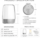 Hansang Alarm Clock, Nursery Night Light, 3 Ways Dimmable Warm White Sunrise Alarm Clock Wake Up Light with 5 Natural Sound Alarms, 7 RGB Lights Description: Introducing the perfect sunrise alarm clock for your bedroom. This alarm clock simulates a sunrise, gradually changing from dark to bright, to help prepare your body for waking up while you're still asleep. The snooze mode ensures that you won't oversleep, as the alarm will ring every 5 minutes until you turn it off. This wake up light also doubles as a night light and is perfect for accompanying kids to sleep. The sleep mode slowly fades the bright light to darkness, creating a comforting environment for your little ones. Made from toy-grade ABS+PP plastic, it's safe for babies too. With 7 color modes including warm white, red, blue, green, purple, yellow, and breathing light, this sunrise alarm clock wake up light is perfect for setting the mood. It also comes with a timer that can be set to turn off after 10, 30, or 60 minutes to help you sleep. Additionally, the alarm clock for heavy sleepers adults features 7 wake-up modes, including 5 nature sounds, a beep-only mode, and a light-only mode, perfect for heavy sleepers. The clock also includes an energy-saving warm white LED bulb that meets strict safety standards and can save you up to 90% on your energy bill. This versatile touch nursery lamp can be used for various activities such as feeding or changing a baby at night, reading, storytelling, creating a cozy atmosphere during candlelight dinners, or watching movies. With a modern design, this night light is a great addition to your bedroom and makes the perfect gift. Specifications: LED colors: Warm white, red, blue, green, purple, yellow & breathing light Material: Toy-grade ABS+PP plastic Item weight: 0.63 lb Product size: Φ106*151mm Adapter input: 100-240V~50/60Hz 0.2A Adapter output: 5V 1A Lamp input: DC5V 1A Lamp power: Max 3W Package Includes: 1 x Sunrise Alarm Clock 1 x Power Cable 1 x User Manual [NATURAL WAKE UP] This alarm clock can help reduce the impact of sleep inertia and allow you to wake up feeling more refreshed and energized in the morning. The gradual light simulates a sunrise, which helps regulate your body's natural sleep-wake cycle. [BEDSIDE READING LIGHT] The adjustable brightness levels of this sunrise alarm clock wake up light make it perfect for use as a bedside reading light. You can set the perfect amount of light for reading comfortably in bed without disturbing your partner. [SLEEP AID] The soothing light and sound of this wake up light can help you fall asleep faster and enjoy a more restful sleep. You can use it to create a peaceful and calming environment that promotes relaxation and restful sleep. [HEAVY SLEEPER FRIENDLY] Our alarm clock for heavy sleepers adults comes with an intimately designed snooze mode to ease your worries in the morning. If you don't manually turn off the alarm within five minutes of it ringing, the snooze mode will activate and the alarm will automatically restart after the next five minutes. [INFANT CARE] This wake up light can also be used for infant care. The soft and gentle light is perfect for feeding or changing your baby without fully waking them up. It's a convenient and practical tool for parents with young children.
