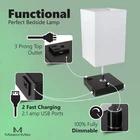 Modern Table Lamp White Large 100% Dimmable with 2 Fast Charge USB Ports & Grounded Outlet for Home and Office Product Details Finish Type: Brushed Base Material: Metal Bulb Base: E26 Medium Product Dimensions: 7"D x 7"W x 18"H Lamp Type: Table Lamp Product Dimensions : 7 x 7 x 18 inches; 3.53 Pounds Item model number : Lamp 1 Date First Available : February 22, 2021 Manufacturer : Mission Goods Customer Reviews: 3.9 3.9 out of 5 stars 51 ratings Finish Type: Brushed Base Material: Metal Bulb Base: E26 Medium Product Dimensions: 7"D x 7"W x 18"H Lamp Type: Table Lamp Shade Color: white Shade Material: Alloy Steel Switch Type: Dimmer Style: Modern Brand: MissionMax Color: Dimmer White Special Feature: dimmable, pull_chain Light Source Type: LED Room Type: Office Recommended Uses For Product: Indoor Number of Light Sources: 1 Connectivity Technology: USB Is Waterproof: False Mounting Type: Tabletop Number of Items: 1 Lighting Method: LED Indoor/Outdoor Usage: Indoor Water Resistance Level: Not Water Resistant Installation Type: Tabletop Number of Pieces: 1 Connectivity Protocol: Usb Is Cordless?: No Manufacturer: Mission Goods Item Weight: 3.52 pounds Item model number: Lamp 1 Finish types: Brushed Special Features: dimmable, pull_chain Batteries Included?: No Batteries Required?: No Date First Available: February 22, 2021