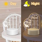 Mother: 【Gifts for Mom】 This personalized night light is engraved with heartwarming words -"Even when I'm not colse by I want you to know I Love you and I appreciate you always consider this heart as a big hug! I Love you"; This night lamp present to express your love for your mother, mom is a great woman that we are most thankful. 【Mom Birthday Gifts Ideas】The night light is made of acrylic and a base, with acrylic light guide plate to bring you a soft lighting effect, the light will not be too strong or too weak, non-flickering and non-glaring, even if you wake up in the middle night, it won’t be dazzling and create the ideal sleep environment for your family. Expressing sincere gratitude for her. USB charging port for PC, charger and mobile devices, et 【Gifts Birthday Gifts For Mom】When you receive the goods, you will find that there is a protective film on the night light. You need to tear it off before use. Be careful not to leave fingerprints when installing. if you are not careful, you can wipe it off to achieve the best visual effect. This LED lamp is great gifted for different special occasions. 【Happy Gifts for Mom 】Every time mom sees this night light engraved with heart-warming words, she will feel strong love. This is a surprise and amazing gift to your Mom.This mom night light for women is the choice. Wife: 【Gifts For Wife 】This personalized night light is engraved with heartwarming words - "To my Wife My Love Your smile ignites MY SOUL your touch heals me and your presence Completer me you are my everying My Forever and ALWAYS". This night light present to express your love for your wife. 【Mothers Day Gifts For Wife 】The night light is made of acrylic and a base, with acrylic light guide plate to bring you a soft lighting effect, the light will not be too strong or too weak, non-flickering and non-glaring, even if you wake up in the middle night, it won’t be dazzling and create the ideal sleep environment for your family. Expressing sincere gratitude for her. USB charging port for PC, charger and mobile devices, et. 【Wife Gifts 】When you receive the goods, you will find that there is a protective film on the night light. You need to tear it off before use. Be careful not to leave fingerprints when installing. if you are not careful, you can wipe it off to achieve the best visual effect. This LED lamp is great gifted for different special occasions. The night lamp marriage will bring wife lucky and happiness. Let your wife know that she will always be in your heart. Let your wife know how important she means to you. 【Birthday Gifts For Wife】Every time sister sees this night light engraved with heart-warming words, she will feel strong love from her sisterhood . This is a surprise and amazing to your sister. She will love it. Suitable to apply as home decoration in your bedroom, living room, dining room, etc.