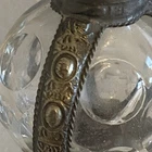 This beautiful Moroccan Rose Water Bottle is a perfect addition to your collection. Handcrafted in Morocco, this decorative glass bottle is adorned with intricate designs and patterns that give it a unique and elegant look. The bottle is perfect for storing your favorite perfumes or as a decorative piece in your home or office. Made from high-quality materials, this decorative glass bottle is durable and long-lasting. Its unique design makes it a great gift for loved ones or a treat for yourself. Whether you're looking for a statement piece for your vanity or a beautiful accessory for your dresser, this Moroccan Rose Water Bottle is sure to impress. Slight residue inside the glass receptacle.