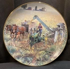 This 8” round collector plate titled "Golden Harvest" by Mort Kunstler captures a nostalgic scene of farming with a John Deere tractor and horses. The plate is pre-owned and comes in good, clean condition with no chips, cracks, or breaks. Please see pictures for details. If you have any questions or concerns, please do not hesitate to contact us. Check out our other items and message us if interested in more than one listing as combining items could save you money on shipping.