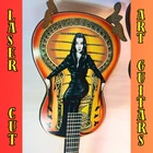 ***Treasure Suite offers you many pieces of my art prints now*** ###This section is for large sized laser cut art guitars,cellos,etc. Approximate measurements are 17"hx6"wx.25"d. ### This one is of the lovely and timeless Mortica Addams sitting in her wicker chair. Made illustration fit by flipping upside down. Like a bat. Notice Gomez' face on headstock. Welcome to my unique collection of digital art, where creativity meets craftsmanship! Each piece in this category features my original designs, heat pressed into vibrant sublimation prints on laser cut wood or polyester canvas material. These art pieces are not just decorations, they are collectibles that bring a touch of gothic, rock and roll, horror, pin-up, and lowbrow art into your space. Explore an array of striking designs on my mini guitars to other stringed instrument laser cut art pieces, available in 2 sizes and complete with custom laser cut foldable stands that I personally designed. These pieces are perfect for adding a distinctive edge to your home or office, and they make fantastic gifts for art enthusiasts and collectors alike. Looking for something truly one-of-a-kind? I may accept custom orders to bring your unique vision to life. Dive into a world of bold, expressive art that stands out and speaks to the rebel in all of us!