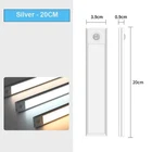Ultra-thin Motion Sensor Under Cabinet Light Wireless LED Light USB Rechargeable For Kitchen Wardrobe Bedroom Cabinet Lighting Specification: Item type: Cabinet Lamp Light color: Three Colors( white lights/warm lights/Neutral light) Shell color:Silver Product material: Aluminum alloy + PMMA+ ABS Induction method: Always bright/all day sensing/dark night sensing Battery capacity:600mah /800 mah Charging method: USB charging Endurance time: ≥4 hours Charging time: About 3 hours Induction Endurance time: ≤25±5S Use range: Wardrobe, cabinet, corridor, dark compartment, shoe cabinet, etc. Feature: Short press: Cycle through white, warm and neutral light Long press: When the light is on, press the button without releasing it to turn on the brightness adjustment, release the button to lock the brightness. (with brightness memory function) Warm Tips: 1.Please fully charge the battery before using it for the first time, otherwise the light may not be use because of the circuit protection.(The protection is automatically released after charging 2.The iron sheet has the same amount as the magnet amount of the light, The iron sheet amou of different light size may be different. Package includes: 1* LED Night Light(With Magnetic iron patch) 1*USB Charging Cable 1*user's manual Ultra-long Distance Sensing Range The sensing range of the lamp is the area within 120 ° and 3 meters the probe as the center point. Tips:improper installation or blocking the sensing probe will affect the sensing sensitivity. Easy to Install, Wide Application This led motion sensor cabinet light has built-in magnetic that can easily stick on any iron surface. It also comes with adhesive tapes and magnetic sheets ensuring it can stick on any non-iron surface. The magnetic design allows the led light bar to be easily taken off for charging or changing positions, perfect for bedrooms, cabinets, workshops, basements, garages, hallways, stairwells, and etc.