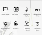 Multifunctional Large Screen Digital Alarm Clock Humidity Display Brightness Adjustment Charging Desktop Clock Home Office Decor Features: Dual Alarm Clocks: You can set two alarm clocks in different time periods (such as weekdays and weekends), which can help you plan your time reasonably. 3 Levels of Brightness Adjustment: This alarm clock has 3 levels of brightness adjustment, and also adopts a high sensitivity photosensitive sensor, which can automatically sense the ambient light and adjust the brightness of the display. The stronger the ambient light, the brighter the backlight, and the weaker the ambient light, the dimmer the backlight. Perfect Gift: It is not only a clock, but also a good decoration for your bedroom. The stylish appearance and multiple functions make it perfect as a gift. Dual Power Mode and USB Ports: This product can be powered via the supplied USB cable or by installing AAA batteries (not included). When powered by the USB cable, there are two USB ports on the back, one for put and one for output. Note: AAA battery mode can not output charging. Specifications: Item Name: Digital Alarm Clock Material: Plastic Output: 5V 1A Color: as the picture Display Screen: LED Applicable Places: Home, Room, Outdoor, Office, Meeting Room, Bedroom, Places Where an Alarm Clock is Needed Size: 9cm x 2.5cm x 12cm(Approx.) Package Includes: 1 x Digital Alarm Clock 1 x USB Cable (Battery not included in package) Note: Due to different lighting and screen settings, the item color may be slightly different from the picture. Due to different manual measurements, please allow a 1-2cm difference in size. 1. Use carbon batteries; can not use alkaline batteries, overcharge is too strong to burn off the power supply (broken words, display incomplete) will shorten the life of the electronic clock 2. Adapter (plug) with 5V 1A, can not use fast charging, can not use the charging treasure, can not be used in the computer host, can not use the bull socket, will cause voltage instability, resulting in time is not allowed, the current is too strong will burn off the power supply (broken words, display incomplete) will shorten the life of the electronic clock!