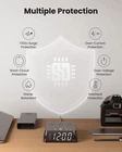 ✅【Dimmable Full Screen LED Display】This nightstand alarm clock charger has a 5.3X1.8 inch full-screen LED display that allows you to see the digits of time, even with your sleepy eyes not fully open. The 4-degree dimmable screen allows you to select from zero, low, medium, and full brightness to fit different lighting conditions of the room. ✅【Dual Alarm Setting with Snooze Function】You can set two independent alarms for the clock. When the alarm is ringing, press the DIMMER/SNOOZE/CLOCK button for a 9 minute snooze, which earns you invaluable time to wake up in a better mood. ✅【Convenient Nightstand Charger】[Convenient Nightstand Charger] Built with 3 AC outlets and 4USBs (5V/0-2.4A each, 4.8A/24W in total), this bedside charging station offer handy power access to your phones, tablets, nightstand lamp, radios, etc. ✅【Under Multiple Protection】This alarm clock charging station has a high strength casing made of ABS+PC material that are fire-resistant up to UL94 V-0 level. With the built-in 1700J surge protection, overload protection, over-voltage protection, over-current protection, short-circuit protection and overheat protection, your devices are well protected from multiple dimensions. ✅【Time and Alarms Back Up】With a battery chamber on the back to hold 2 AAA batteries (not included), this alarm clock will not shut down even when a power outage occurs or it is disconnected from the power source. Unlike other clocks that solely rely on battery power, the batteries in this power strip alarm clock work longer as they are for backup.
