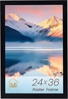 Muzilife 24×36" Black Poster Frame 1 Pack, Engineered Wood Poster Picture Frames with HD Plexiglass Cover and Hanging Hardware for Horizontal or Vertical, Large 【Applicable Scene】 Muzilife poster frame features a minimalist style design, suitable for hanging on any wall in a home decoration, office, photo studio, art gallery, hallway, etc. You can use them for video games, and movie posters to redecorate anywhere 【Sturdy Material】 The photo frame and backing board are made of strong and stable MDF density board, which looks great, is strong, durable, and anti-fall, can protect your photos from dust, moisture, or insect damage, Keeps it looking new for many years 【Easy to Install】The picture frames are designed with sturdy hanging hardware on the back, allowing them to be hung horizontally or vertically for gallery-style wall installation. The frame has a pull tab on the back panel, allowing the back panel to be easily removed without hurting your fingers 【Polished Plexiglass Cover】Plexiglass is used instead of real glass, which keeps the display clear, and the plexiglass is shatterproof, so you don't need to worry about it falling from the table and causing it to break. Please remove the protective film on both sides of the plexiglass before use! 【Carefully Packed】Our poster picture frames are carefully packaged to ensure product safety. You don't have to worry about receiving a damaged product. The frame's simple design and smooth lines are perfect for any style of photo, these chic and beautiful frames make great gifts for weddings, baby showers, graduations, anniversaries, festivals, birthdays, or holidays