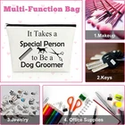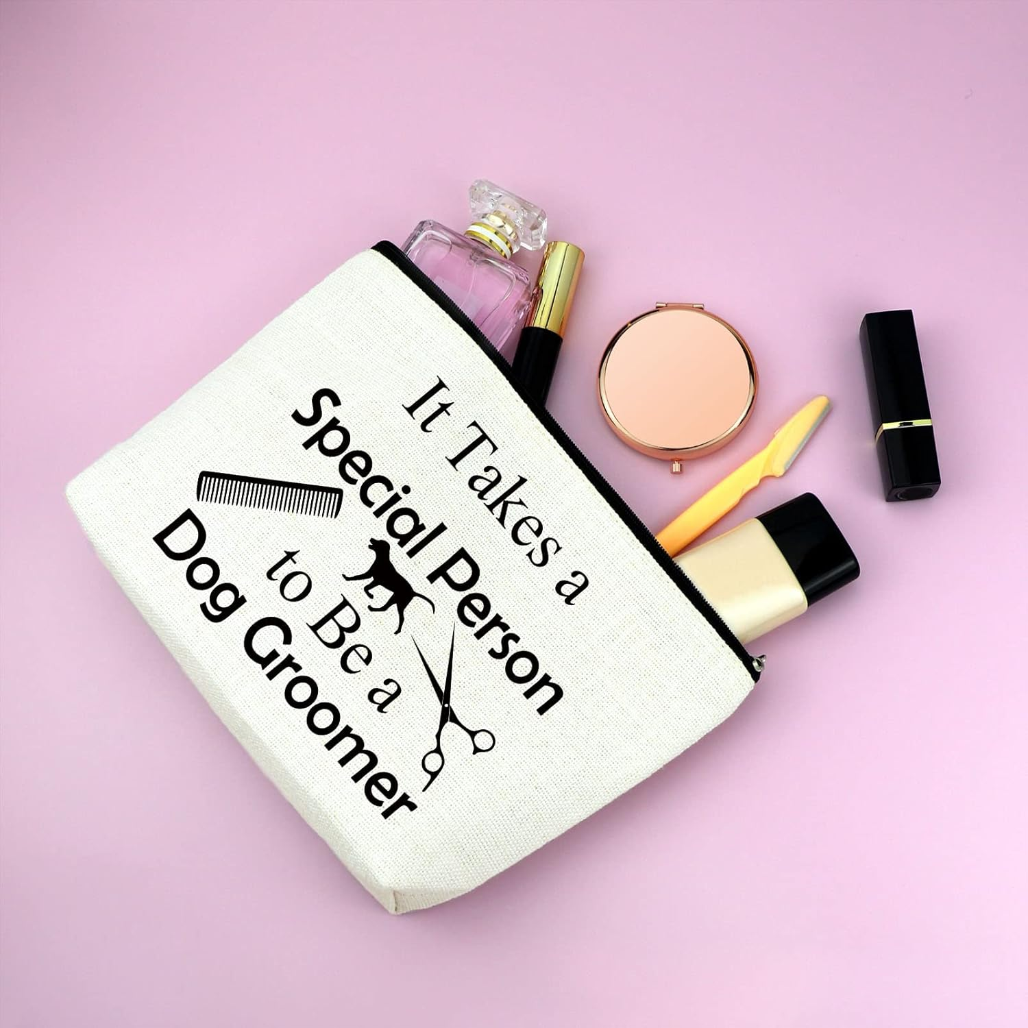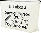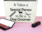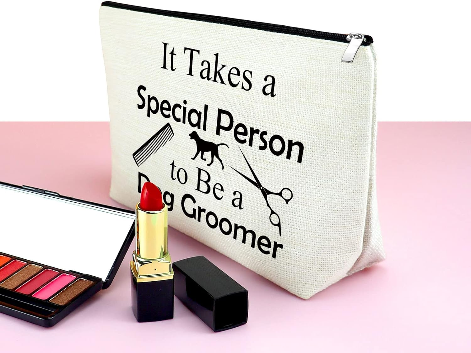 Dog Groomer Gift:This groomer themed makeup bag was Printed the quotes”It Takes A Special Person To Be A Dog Groomer”. Is the best gift for pet groomers ,dog groomer ,dog stylist ,dog hairdresser ,dog owner ,dog lovers. Pet Groomer Gift for Women:A gift that honors the hard working, dog washing, claw clipping, fur brushing, blow drying, ear cleaning groomer. It is a perfect gift for any occasion.Dogs are man's most loyal friends, and dog groomers are their profession. Show your gratitude to them with this dog groomer cosmetic bag! Dog Groomer Appreciation Gift:The perfect Birthday,Christmas,Thanksgiving,New Year, Wedding Anniversary Gift for Dog Groomer,Pet Groomer,Dog Hairdresser ,Dog Lovers ,Groomers BBS, Pet Sitters,Rescue Shelter Workers or Pet Owner. Dog Hairdresser Cosmetic Bag:Double-sided printed, high quality coating, to ensure high quality images that will remain vibrant with daily use. Material makes the makeup bags practical and durable for daily use, lightweight and easy to carry, reusable and long-lasting. It's easy to clean, it can be washed by hand wash. Birthday Gifts for Dog Stylist:The size of this cosmetic bag is 22x14cm(8.7”x5.5”). Proper size and space, which has plenty of storage space to store your lots of cosmetics. Can store your cosmetics easily, such as makeup brushes, mascara, lipstick, wipes and so on. Smooth zipper in vantage appearance, tight to protect items in, it can ensure your items not easy to fall off. It's a perfect travel bags for women. THIS ITEM IS NOT INTENDED FOR USE BY CHILDREN 12 AND UNDER. Pet Grooming Gift Ideas Give this pet groomer gift on birthdays, Christmas, Thanksgiving, New Years, wedding anniversaries or just because you want to say thank you or give a gift. You're sure to see happy smiles on their faces, which will make them love the job even more. Specification Material: cotton and linen. Size: 10 x 7 inches/ 25 x 17cm. The package includes: 1X Dog Groomer Makeup Bag.