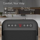Introducing the CD09101 MyHeat™ Max Personal Desktop Digital Ceramic Space Heater – the perfect personal heater Experience warmth tailored to your liking with the electronic front-mounted controls featuring a user-friendly digital display. Choose between two comfort heat settings - high heat (1500 watts) or low heat (900 watts) - to create the perfect atmosphere in any room. Designed for convenience, the easy-grip carry handle allows you to effortlessly transport the MyHeat Max from room to room. Its compact size makes it the ideal personal space heater, fitting seamlessly on any desk or tabletop surface without sacrificing space. Take control of your heating experience with the auto-off timer, allowing you to set the heater for up to 12 hours. No need to worry about leaving it on – the MyHeat Max will automatically shut off after the selected time, providing you with peace of mind. With the Adjustable Thermostat you can set your preferred temperature, and along with AutoEco Mode the heater will maintain it with less energy consumption. Stay warm and cozy while being mindful of your energy usage. Safety is our top priority. The MyHeat Max features a tip over switch, 2 times overheat protection, a safe ceramic element, and cool-touch housing, ensuring your peace of mind while enjoying the warmth it provides. Say goodbye to assembly hassles! The MyHeat Max comes fully assembled and ready to use. The 6-foot power cord ensures easy access to the nearest outlet, providing you with flexibility in choosing the perfect spot for your personal heater. We stand by the quality of our products. The MyHeat Max comes with a 3-year limited warranty, giving you the confidence and assurance that you're investing in a reliable and durable heating solution. SMALL BUT MIGHTY: The MyHeat Max personal space heater features 1500 watts of comforting warmth and produces 35% more air velocity compared to previous models to help keep you warm all season long ENERGY SAVING: The Auto Eco thermostat maintains temperature with less energy, saving you money while heating your personal space EASY TO USE: This portable heater for indoor use features touch controls with a digital read out, 2 heat settings, a 12-hour timer and an adjustable thermostat. PERSONAL COMFORT: Quickly warm your personal space with the MyHeat Max from ; this space heater features a compact design and will fit nicely on desks and tabletops in your office, kitchen, bedroom, game room and living room TRIPLE SAFE: Safety is a top priority at , this electric space heater features 2X overheat protection, tip over protection and a cool touch housing