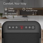 SMALL BUT MIGHTY: The MyHeat Max personal space heater features 1500 watts of comforting warmth and produces 35% more air velocity compared to previous models to help keep you warm all season long ENERGY SAVING: The Auto Eco thermostat maintains temperature with less energy, saving you money while heating your personal space EASY TO USE: This portable heater for indoor use features touch controls with a digital read out, 2 heat settings, a 12-hour timer and an adjustable thermostat. PERSONAL COMFORT: Quickly warm your personal space with the MyHeat Max from Lasko; this space heater features a compact design and will fit nicely on desks and tabletops in your office, kitchen, bedroom, game room and living room TRIPLE SAFE: Safety is a top priority at Lasko, this electric space heater features 2X overheat protection, tip over protection and a cool touch housing Introducing the Lasko CD09101 MyHeat™ Max Personal Desktop Digital Ceramic Space Heater – the perfect personal heater Experience warmth tailored to your liking with the electronic front-mounted controls featuring a user-friendly digital display. Choose between two comfort heat settings - high heat (1500 watts) or low heat (900 watts) - to create the perfect atmosphere in any room. Designed for convenience, the easy-grip carry handle allows you to effortlessly transport the MyHeat Max from room to room. Its compact size makes it the ideal personal space heater, fitting seamlessly on any desk or tabletop surface without sacrificing space. Take control of your heating experience with the auto-off timer, allowing you to set the heater for up to 12 hours. No need to worry about leaving it on – the MyHeat Max will automatically shut off after the selected time, providing you with peace of mind. With the Adjustable Thermostat you can set your preferred temperature, and along with AutoEco Mode the heater will maintain it with less energy consumption. Stay warm and cozy while being mindful of your energy usage. Safety is our top priority. The MyHeat Max features a tip over switch, 2 times overheat protection, a safe ceramic element, and cool-touch housing, ensuring your peace of mind while enjoying the warmth it provides. Say goodbye to assembly hassles! The MyHeat Max comes fully assembled and ready to use. The 6-foot power cord ensures easy access to the nearest outlet, providing you with flexibility in choosing the perfect spot for your personal heater. We stand by the quality of our products. The MyHeat Max comes with a 3-year limited warranty, giving you the confidence and assurance that you're investing in a reliable and durable heating solution.