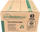 **NEW DRAWSTRING**Sustainable white, super stretch, tall kitchen trash bag with DRAWSTRING 24"x27", .85mil, 100 bags per box, 2 rolls of 50. **NEW**One by One dispensing no more perforations to find. Made with 70% (third-party certified) Post-Consumer Recycled (PCR) LLDPE. The exclusive closed-loop recycling process allows our trash bags to be manufactured at the highest quality. Exceeds EPA Procurement Guidelines by 700%, UL ECOLOGO certified and counts toward LEED. Proud members of 1% For The Planet. At least 40% of our packaging is made from PCR paper. MADE IN THE U.S.A. Please note when we add the new DRAWSTRING, we reduced the length of our trash bags which reduced our plastic content by 12.5% from our original 13 gallon tall kitchen trash bags!! NEW Drawstring, White, 13 gallon tall kitchen trash bags, NEW one by one dispensing, (100 bags, 2 rolls of 50) EPA Compliant, UL ECOLOGO certified, Qualifies for USGBC LEED program Exceeds EPA Procurement Guidelines by 700% Made from 70% Certified Post-Consumer Recycled LLDPE. Made in the U.S.A. Proud member of 1% For The Planet and Made in the U.S.A. our new drawstring has reduced our plastic by 12.5% and increased the total capacity by an average of 20%!!