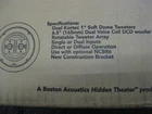 BOSTON ACOUSTICS DSi465T2 NEW IN BOX IN WALL SPEAKER (Single Speaker) Get incredibly flexible performance from a speaker that installs directly into your ceiling. The DSi465T2 from Boston Acoustics, sold individually, Delivers clean, high-impact stereo sound from a single speaker — Perfect for getting great audio in awkward areas like a hallway, bathroom or kitchen. The DSi465T2 has inputs for both left and right channels and two 1" tweeters (one per channel), so you'll hear both halves of the stereo music mix. And a 6-1/2" woofer with dual voice coils takes care of the mids and bass with power and precision. But that's not all. You can also use the DSi465T2 as a single-input dipole/bipole surround speaker in a Boston Acoustics "Hidden Theater™" surround sound system. There's a selectable direct/diffuse switch. Depending on your setup, you can have the two tweeters firing in phase (bipole) for clear, directional sound, or out of phase (dipole) for a more diffuse soundfield. The DSi465T2 makes a great surround speaker matched with a front soundstage composed of the high-performance Brand New in the Box. Original High End Boston and nearly impossible to find New and Unused These were from a local company that was still installing these locally till they closed up their doors and I purchased some of their inventory. All of these I have for sale are factory fresh as they were always stored indoors in a heated facility. NEW PRICE ON THIS SPEAKER WHEN THEY WERE OUT WAS 599.00 stereo input speaker dual 1" Kortec® tweeters 6-1/2" woofer handles up to 100 watts frequency response 60-20,000 Hz (±3dB) sensitivity 91 dB impedance: 8 ohms in stereo input mode, 4 ohms in single input mode selectable direct/diffuse modes paintable, moisture-resistant speaker grille cutout dimensions: 8-11/16" diameter mounting depth: 4-9/16" FAST SHIPPING ON THIS - I SHIP OUT THE SAME DAY OR NEXT AFTER PURCHASE