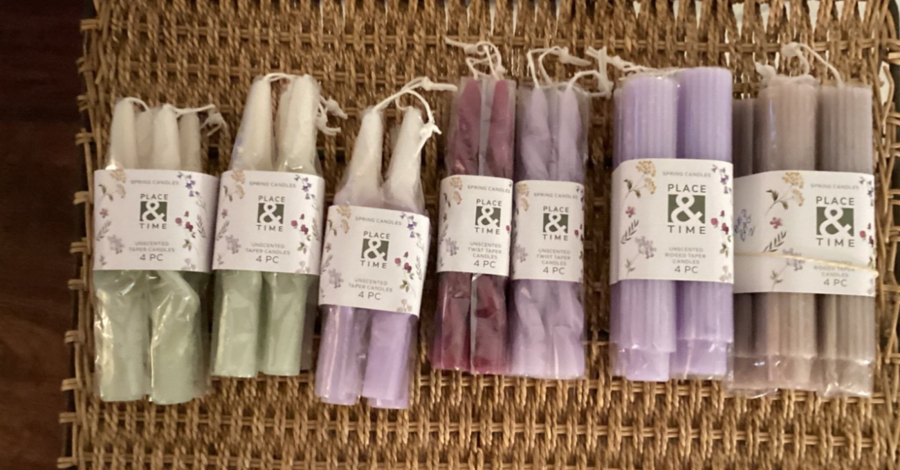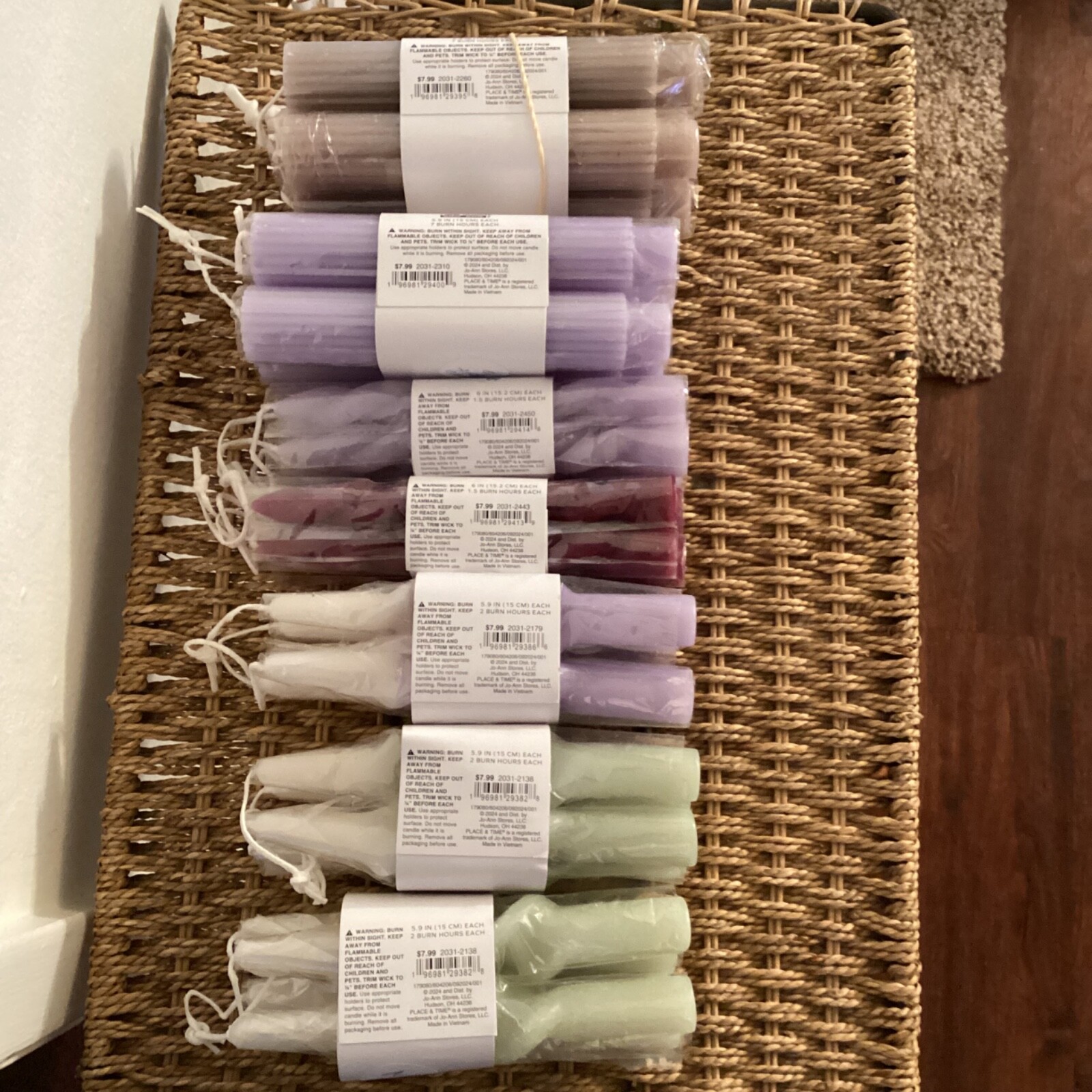 The "Place & Time" unscented collection of taper, ridge taper, and twist taper candles offers a variety of sizes and colors to enhance any home decor. With a medium size and 28 candles in the collection, these candles provide a warm and inviting ambiance without any distracting scents. Perfect for creating a relaxing atmosphere or adding a touch of elegance to any room, these candles from the brand Place and Time are a stylish addition to any home. Lavender 4-Ridged Taper Candles Lavender 4 Twist Taper Candles Lavender 4 Taper Candles Lavender 4 Taper Candles Lavender 4 Twist taper candles Light green 8 taper candles Dark red twist Taper candles Sold As A Collection