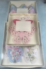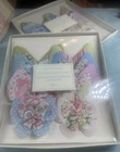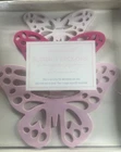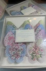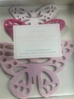 These are 3 never used boxes of Pottery Barn Kids butterfly stick ons. The smaller box is open and slightly bent from how it was stored but the butterflies are still fastened in the box. The small box has 9 paper butterflies in white, bright pink and light pink. They measure 3.5”-6” across. The 2 larger boxes have never been opened. Each box has 9 fabric butterflies. They are beautifully done in a combination of floral, dots, stripes and gingham fabric. They measure 2 3/4”-3 1/2” across.