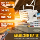 Need safe, comfortable, quick heater. Infrared heater DR-975 heavy-duty hardwired shop garage heater can be easily installed in your new or remodeled building. This 7500W heater can be the primary or auxiliary heat source ideally suited for use in garages, factories, stores, warehouses, workshops, Schools, churches, hospitals, dormitories, or any exposed spaces. The DR-975 uses spiral steel metal sheath electric heating elements with low sheath temperatures, providing uniform heat and long lasting product life. Additionally, a large, matched, dynamic fan provides maximum air flow with minimum Turbulence and noise, gently distributing warmth throughout your space. The heavy duty ball bearing motor is totally enclosed, thermally protected, and permanently lubricated, requiring minimal maintenance. Built-in adjustable remote-controlled thermostat allows you to set your desired temperature between 50 - 85 degrees. If desired, an optional wall-mounted external thermostat can be wired to this heater (sold separately, does not come with heater). rugged stamped steel front cover features five adjustable louvers for easy airflow control. Can be mounted on either the wall or ceiling (bracket included). finished in a white epoxy paint. UL & CUL listed. 1 year limited component warranty. Heavy duty 240V single Phase 4700W/7500W electric heater Hardwired; Power cord not included, Use 8 AWG copper wires for connection. Remote controlled thermostat with temperature range from 50 - 85 degree 5 adjustable louvers to direct airflow UL/CUL listed; timer feature; heavy duty fully enclosed motor
