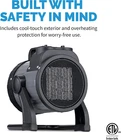 [SAFETY FIRST] - Our Garage Heater ensures safety with a cool-to-the-touch design, internal thermostat, and automatic shut-off, preventing overheating. [PORTABLE WARMTH] - Enjoy flexibility with adjustable temperature control, 2 heat modes, a tilting head, and an easy carry handle for convenient mobility. [FAST HEAT] - Experience rapid warmth with a ceramic heating plate and a powerful 200 CFM fan, delivering a steady stream of comforting heat. [QUALITY BUILD] - Crafted for durability, this heater boasts a rugged shell designed to withstand tough conditions in any workspace, ensuring long-lasting performance. [PLUG AND PLAY] - With a 120-volt plug, this portable heater is versatile, fitting into any standard outlet for quick and convenient use wherever you need efficient warmth. This portable ceramic heater is the ideal companion for working in a garage or workshop on chilly days. It heats up fast and gets to work right away, delivering warm air to your workspace without any wait time. You'll stay toasty, too. Tilt your heater head and adjust the airflow in any direction up to heat up to 160 square feet of space from where you sit. Plus, this portable heater is easy to store when not in use and is designed to stand up to rough-and-ready working conditions. The 120-volt plug works in any standard outlet for total flexibility on the go, Heavy-duty construction ideal for garages, workshops and more, Portable, lightweight design and 120v plug for extra heat anywhere, ceramic heating plate paired with a 200 CFMs fan heats up to 160 square feet of space, Adjustable, tilt head aims heat where it's most needed for spot heating, 1. Heavy-Duty Spot Heater for Garages Don't let winter put an end to your garage and workshop hobbies! The Newair Portable Ceramic 120v Electric Garage Space Heater is built to last with a rugged shell that can stand up to tough conditions in any workspace. 2. Portable, Plug-and-Play Design Thanks to its 120-volt plug, you can use this portable garage heater in any standard outlet so you can stay warm anywhere. The lightweight body has an integrated handle for travel, while the compact design makes it easy to pack away when winter ends. 3. Fan and Heating Plate Come Together to Create Fast Heat This portable space heater combines the efficiency of a ceramic heating plate with the power of a 200 CFM fan to deliver a steady stream of warm air to your work area. The fan directs air over the heating plate to eliminate cold spots. 4. Adjustable Heat Right Where You Need It Most This portable electric garage heater features a convenient tilting head to spot-heat up to 160 square feet of personal space. Choose from two heat settings to control the power behind your heater. Plus, you can adjust the temperature to meet your exact heating needs. 5. Smart Safety Features This electric heater has an internal thermostat and automatic shut-off function that prevent overheating. The exterior housing is also designed to stay cool to the touch, preventing any opportunities for accidental burns.