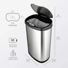 About this item 【Hassle Free Two-Year Warranty】Hassle free warranty process with our dedicated customer service line and at no additional charges for your defective parts 【High Quality Materials】Water-resistant infrared motion sensor prevents moisture or any accidental spills from damaging the unit. Plust finger-print resistant stainless steel base helps keep the can clean. 【Advanced Technology】 Delay sensing technology preserves battery life and prevents any unnecessary opening from pets, children, or walking by. Quiet closing function for longivity of product life. 【Touch-free Motion Sensor Lid Clouser】Seal odor in and eliminate cross-contamination of germs. Requires 3 C batteries (not included), Alkaline battery highly recommended for best performance. 【Ease and Convenient】Removable ring liner holds trash bag sturdy in place and prevents bag from overhanging for a neat and clean appearance. Use any standard trash bags or NINESTARS custom trash bags NSTB-13-30.