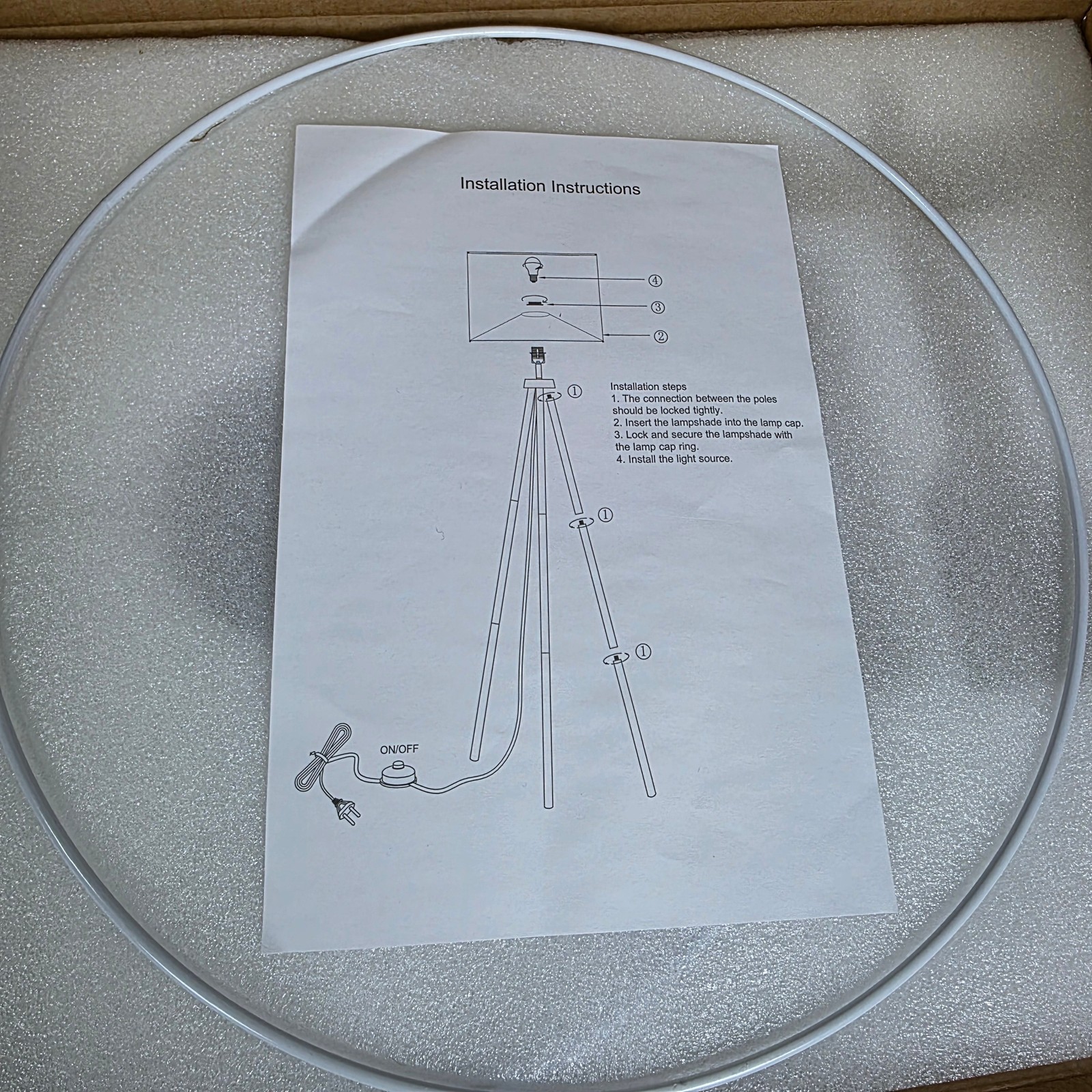 "Light up your space with our NIOB New Wooden Tripod Floor Lamp! At 63 inches tall, this dimmable oak lamp features a convenient remote control and a stylish beige linen shade. Perfect for adding warmth and ambiance to any room. (No tripods were harmed in the making of this lamp.)"