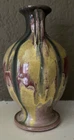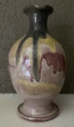 Pitchers with this traditional shape - usually called "Rebekah Jugs" - came in many sizes and have been hand-thrown and hand-glazed by North Carolina potters for decades. It has a multi-colored gloss drip glaze that flows beautifully all over the exterior & interior. It is about 6-1/2 inches tall and 3-3/4 inches in diameter at its widest point. The curved handle is about 1-3/4 inches long and extends about 1-3/8 inches from the body of the pitcher. The base is about 2-1/2 inches in diameter and the top rim with spout is about 1-3/4 inches in diameter. Unfortunately, these pitchers are often found without a potter's mark but I would attribute this to a North Carolina maker. Age is unknown but I have had it for years and it is not new. It is in very good condition with no chips, hairlines, or crazing. Ships USPS. Please look at my ebay store for more North Carolina pottery!
