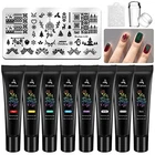 Nail Stamping Plates Set:It includes 10 Nail Stamp Plates + 1 Jelly stamper +1 Replace Head + 8 Stamping polish +1scraper. This is the best gift, you will be shinning on halloween day. Stamping polish : Contains essential colors,8*0.25FL.OZ Stamping polish in different colors ( green, black, white, blue, gold, purple, red, silver). Nail stamp Plates: It is made of high-quality 304 stainless steel. Holiday Theme - The nail stamping plates feature Christmas theme, The template contains Snow, Santa Claus, deer, music, animals, flowers, leaves, and lattice themes. It can also be suitable for daily use in the scene that meets the needs of special festivals. Stamper: Not only can stamp but also French manicure. Transparent silicone material, with clear profile, complete structure and transparent texture all over the body. The location of the profile can be clearly seen. Easy to Use: Peel off the blue protective film, apply nail stamping , scrap off excess and use the nail stamper on it. If you have any questions, please feel free to us, we will give you a satisfactory answer or a full .
