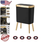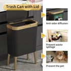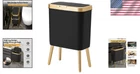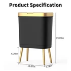 Features: With Handles, Automatic, Heavy Duty, Odor Seal Item Height: Trash Can Size: Medium Opening Mechanism: Press-top UPC: Does not apply Item Weight: 2.2 pounds Number of Compartments: 1 Shape: Rectangle Type: Trash Can Color: Black Brand: Unbranded Finish Type: Gold, Black Recommended Uses For Product: Bathroom,kitchen,office Capacity: 4 gal gtin13: Does not apply Room Type: Office, Bathroom, Living Room, Bedroom Personalize: No Room: Bathroom, Kitchen, Living Room, Bedroom, Office Suitable For: Indoor, General Waste Item Width: Trash Can Special Feature: Odor Seal Product Dimensions: 13 X 7.7 X 12.8 Inches; 2.2 Pounds Item Length: Trash Can Finish: Gold Style: Modern Material: Plastic