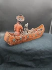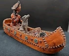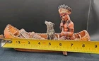 This exquisite statue depicts a Native American Indian in a sculpted canoe with a dog at his side. Crafted from high-quality resin, this piece is a stunning addition to any collection. The intricate details of the canoe and the dog's fur are a testament to the skill of the artisan who created it. The statue is an original piece and was manufactured in China. This statue is perfect for collectors of Native American artifacts or for those who appreciate the beauty and intrigue of ancient cultures. See photos for details. Message me with any questions you may have. Thank you, and please take a look at my other items. (Seller's Notes V-18)