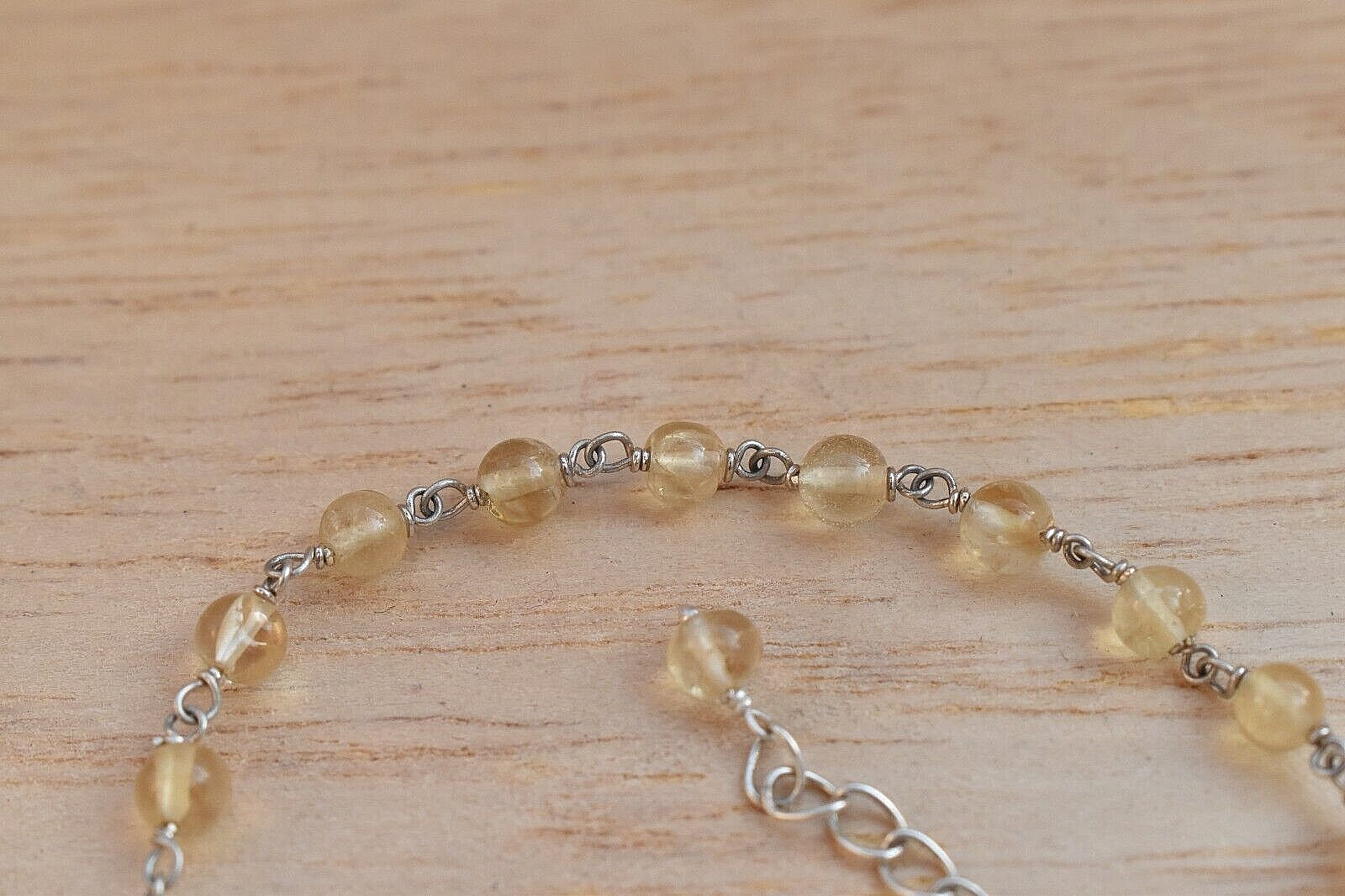Welcome to our Shop! This bracelet is made with natural Citrine of 4mm size good quality handcrafted with sterling silver wire to give it elegant look. Bracelet has 4 cm/ 3cm adjustable chain for flexible fitting. This beautiful bracelet is made for all occasions. PERFECT GIFT FOR SPECIAL ONES! The listing uses professional photography that samples our collection. Each gemstone has its own beauty and is different in its own way, making them Unique in every parameter. YOU WILL RECEIVE THE MENTIONED STONE FROM OUR COLLECTION and will share picture before delivery . We can also customize it by choosing your choice of gemstones! When we customize jewelry for your clients we feel proud the share every details from selection of stones to getting the jewelry made , we will share you videos of the process !! KINDLY CONTACT US FOR FURTHER DETAILS! WE WOULD LIKE TO HEAR FROM YOU ! Gift packaging is available on request and is paid. Please contact for the same. Returns- We understand that it is very important to be satisfied with the Purchase you make. So for returns and exchange we request you to contact us within 3 days of delivery . Also it would be great if you could record while unpacking the parcel for better transparency ! the returns or exchange needs to be sent back and delivered within 7 working days. Return shipping is paid by the Buyer. For any queries Please feel free to message us. Normally we respond in maximum 24 hours. also visit our social media page - AGEEZA__ to get in touch with us !! Thank you