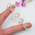 Natural Citrine Raw Gemstone Handmade 925 Sterling Silver Chain Bracelet