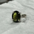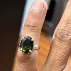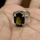 Add a touch of vintage charm to your collection with this beautiful handmade Moldavite ring. The oval-shaped gemstone is set in 925 sterling silver and features a stunning green color that will surely catch anyone's eye. The ring is customizable, making it perfect for engagements, weddings, anniversaries, birthdays, and even Christmas and Valentine's Day gifts. The ring has a bezel setting style and is stackable, making it a great addition to any jewelry collection. The gemstone is natural and has an excellent cut grade, with a clarity grade of eye clean. It has a band width of 2mm and a main stone length of 10mm, with a depth of 2.5mm. This ring is perfect for those who love nature and love themes. Natural Cut Moldavite Ring 925 Sterling Silver Oval Cut Handmade Ring - All Size Gemstone:- Moldavite Stone Size:- 8x10mm Stone Shape:- Oval Stone Category:- Faceted Metal:- 925 Sterling Silver