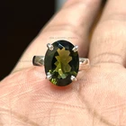 Natural Cut Moldavite Ring 925 Sterling Silver Oval Cut Handmade Ring - All Size