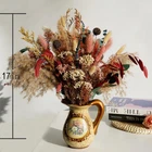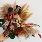 This luxurious bouquet can be easily decorated at your home, wedding, party, etc.. Suitable for medium sized vases.Dried flowers of different sizes and lengths come together to create a natural and harmonious artistic beauty.. Trim it to your preferred length and place it in a vase.It will be a surprise to decorate your life .Our Pampas bouquet is the perfect choice. Natural Dried Flowers: The Dried Flowers bouquet is a unique bouquet made from 13 naturally dried plants, including dried pampas, eucalyptus leaves, rabbit tail, lavender, Billy balls and more.The total length is about 17 inches, not including the vase, and the combination of natural plants brings more color and texture, and is more ornamental. DIY: Bouquets need to be arranged, and you can also use these materials for creative DIY flower arrangements.The elegant and beautiful dried plants create a warm and natural atmosphere and enjoy nature.We pack the dried flowers in different bags and then arrange them in thick cartons.Make your DIY flower arrangement more convenient and not messy. Durability: Selected high-quality flower materials, natural drying, scientific preservation, natural fashion, modern sense.Can be stored for 2~3 years Great decor: Pampas grass stands out in any room!Unique designs can make your home feel modern and artistic, whether it is home, office, window, coffee shop, party event decoration, farmhouse decoration or Bohemian wedding decoration. Tip: Leave the dried bouquet in warm sunlight for a few hours.Let them return to their natural state.The Pampas will expand again, the whole bouquet will become more colorful, and the dried flowers should be kept in a cool and dry place, not exposed to direct sunlight.