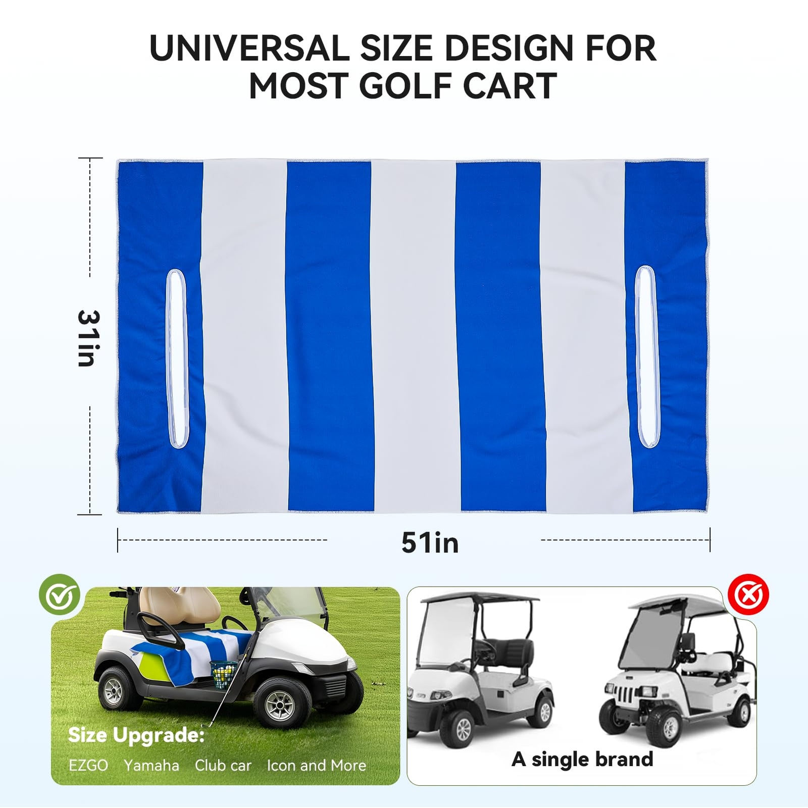 Golf Cart Seat Covers for Summer or Winter, Universal Durable Breathable Anti-hot Golf Cart Seat Towel Blanket for All EZGO, Yamaha, Club Car and More 2 Person Seats Golf Carts (Navy Blue) Universal Golf Cart Seat Covers: Dimensions 51'' (L) x 31'' (H), perfect fit for EZGO, Yamaha, Club Car, Icon, Extra and so on of the 2 seater golf carts. Soft & Super Absorbent Seat Covers for Golf Cart: Premium microfiber fabric, extremely soft and super absorbent and dry quickly. Vibrant and HD prints, fade-resistance, the eye-catching covers not only keeps your goft cart clean, but it also give it a unique look, Comfortable From Heat & Warm for Winter: Nice Protection from a hot, cold, or wet seat, it helps with heat from seats in the sun and prevent skin from sweat sticking or avoid legs burning up. It acts as a cozy blanket during chillier days. Best Gift for Golfer or Renter: This golf cart accessories-seat blanket is the best golf gifts for boss, fathers, husband, brothers and all of golf lovers, it is also a thoughtful gift for your wife, mather, girlfriend, sister. Easy to Install and Clean: Universal golf cart rear seat cover can quickly fix the handrail to keep it in place and it is very convenient to remove it. Folding up and stores in your golf bag easily too. Machine washable. Golf Cart Seat Covers (Navy Blue) Shipping We offer FREE shipping on all orders! We ship within Three business days of payment, usually sooner. We use a selection of shipping services such as UPS, FedEx, USPS etc. We only ship to the lower 48 states, no APO/FPO addresses or PO Boxes allowed. Local pickups and combined shipping options are not provided at this time. Return You can return a product for up to 30 days from the date you purchased it. Any product you return must be in the same condition you received it and in the original packaging. Please keep the receipt. Payment We accept payment by any of the following methods: PayPal Please pay as soon as possible after winning an auction, as that will allow us to post your item to you sooner! Feedback Customer satisfaction is very important to us. If you have any problem with your order, please contact us and we will do our best to make you satisfied. Contact Us If you have any queries, please contact us via ebay. We usually respond within 24 hours on weekdays. Please visit our eBay store to check out other items for sale! Thank you for shopping at our store.