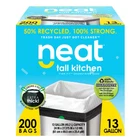 Neat Tall Kitchen 13 Gallon Drawstring Trash Bags - (MEGA 200 COUNT) - Triple Ply Fortified, Eco-Friendly 50% Recycled Material, Neutralize+ Odor Technology, Reversible Black and White Garbage Bags 100% Frustration Free - Neat 13 Gallon trash bags are triply ply fortified using Harmonyx advanced film technology. Resistant to puncture, tears, and leaks, we just made trash day a whole lot smarter. Help the Environment - Our bags use 50% recycled material helping to decrease landfill waste. Feel good knowing you are helping to decrease your carbon footprint vs leading brands. Reversible Black and White Bags - The inside of the bag is white to give a clean, pure look to your kitchen. The outside of the bag is black to conceal what's inside when it's time to take it out. Grips the Can Every Time - Our Firm Fit drawstrings snuggly grip any 13 gallon can without ripping. Easy on and easy off.