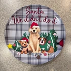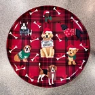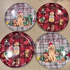 New Holiday Christmas Dogs Dog Plaid Melamine Dinner Plate Set of 4 - 11" Dia. Approximately 11 inches in diameter. Plates are dishwasher safe - top shelf only. Not for use in microwave. US bidders only. Shipped with Standard Shipping.