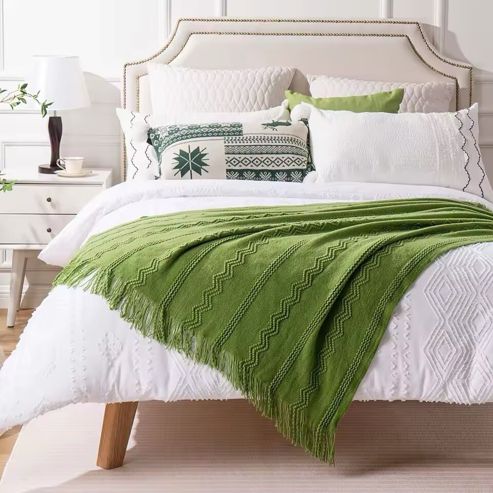 $ 13.2Farmhouse-Inspired 60" x 80" Blue Chenille Throw Blanket - Perfect for Napping