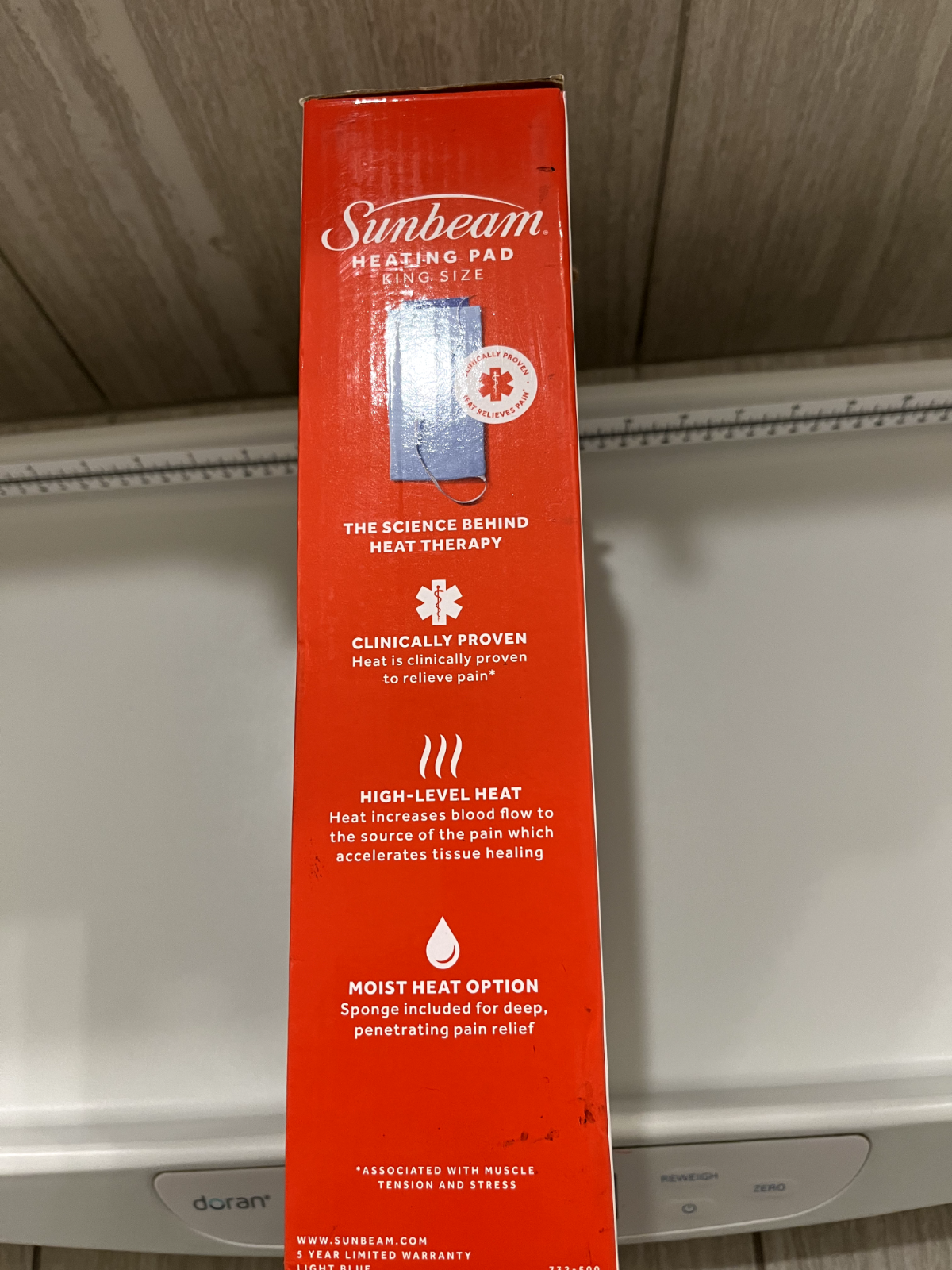 UPC:N/AWARNING - California Proposition 65:NoneColor:BlueDepartment:Adultgtin13:N/AFeatures:Heat SettingsAssembled Product Dimensions (L x W x H):24.00 x 0.25 x 12.00 InchesType:Electric Heating PadBrand:SunbeamPower Source:ElectricModel:000732-500-000U