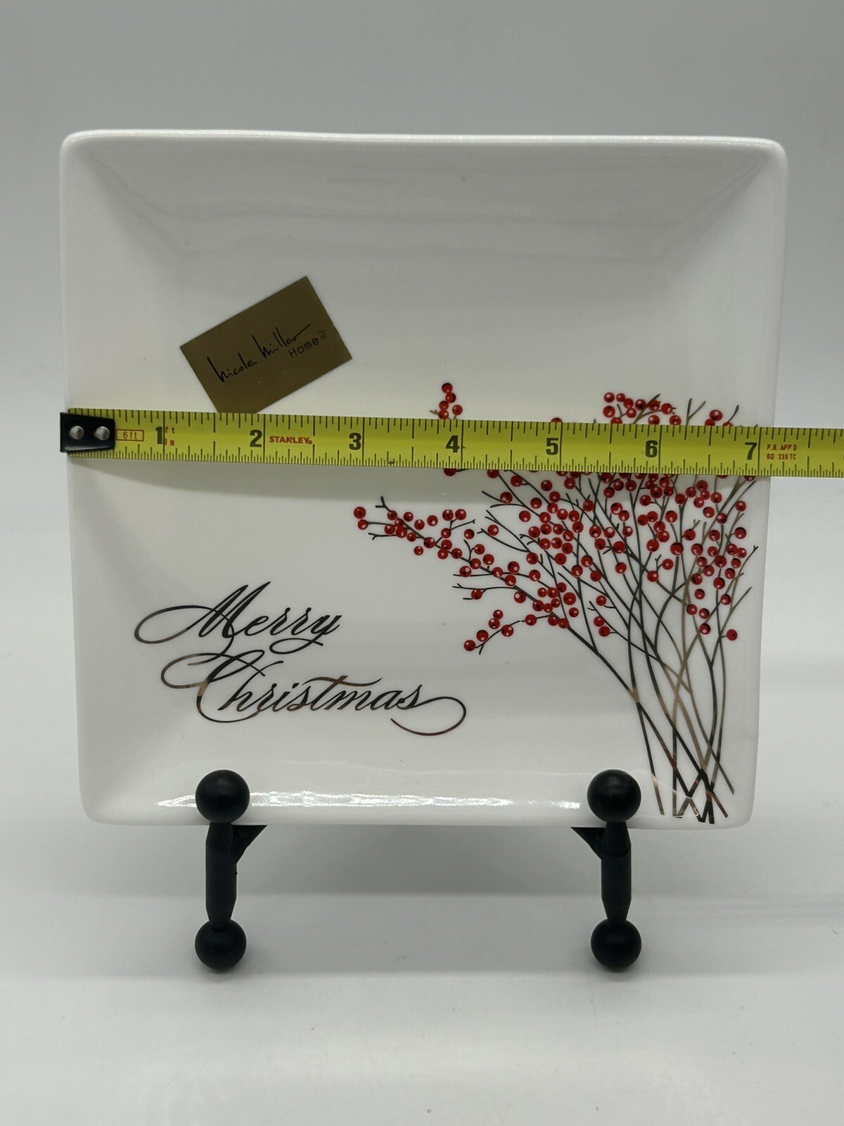 Nicole Miller Home Merry Christmas Gold w/Red Berries 7" Plate Square (Set of 2)
